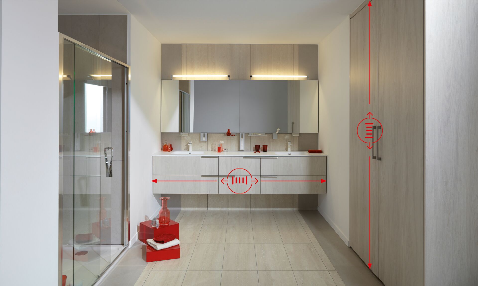 Mit maßgefertigten Waschbeceknunterschränken in Kombination mit variablen Waschtischplatten und frei und nach Bedarf platzierbaren Becken, passt sich Ihr Ensemble perfekt an die räumlichen Gegebenheiten an und ermöglicht die optimale Raumnutzung.