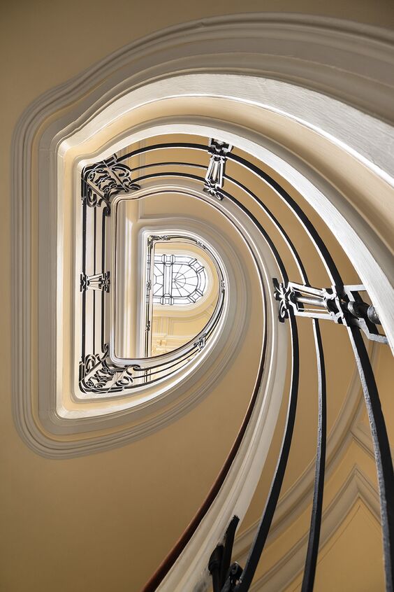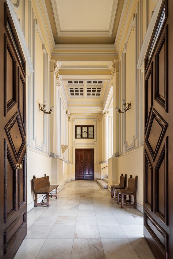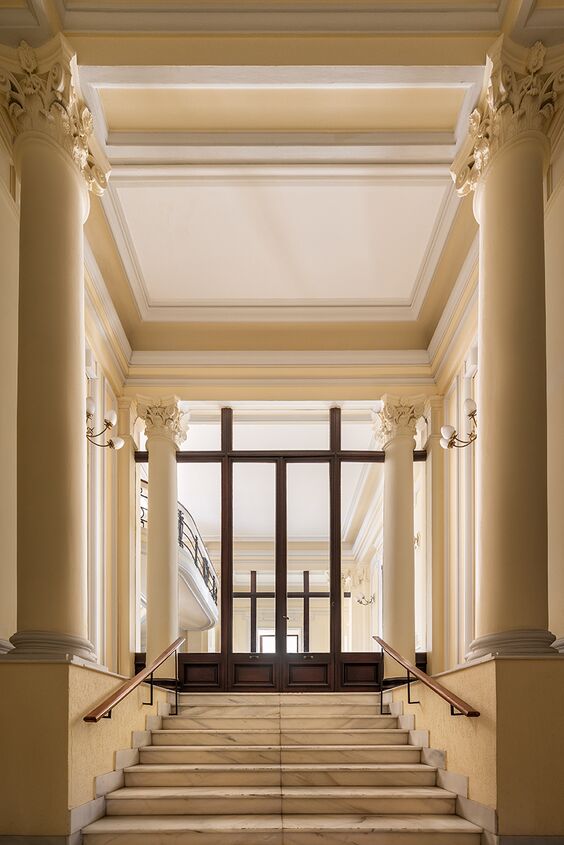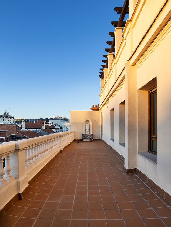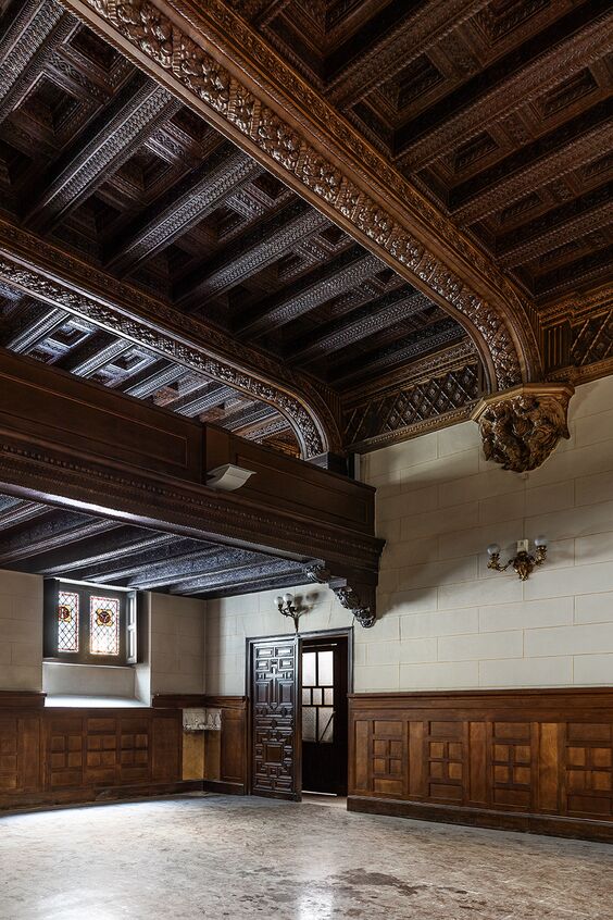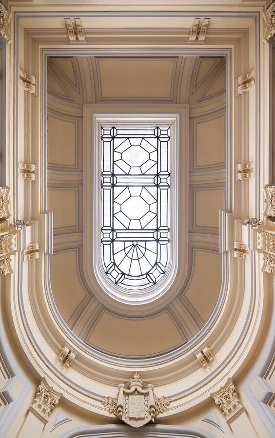 Casa Decor 2026 se celebra en una casa-palacio de finales del siglo XIX situada en el Barrio de las Letras, en Madrid. Construido entre 1892 y 1895 como residencia nobiliaria, el edificio conserva espacios singulares como el vestíbulo con su escalera monumental, la planta principal iluminada por un gran lucernario y una vidriera de la Casa Maumejean, y una capilla instalada en el siglo XX tras su transformación en colegio-convento.