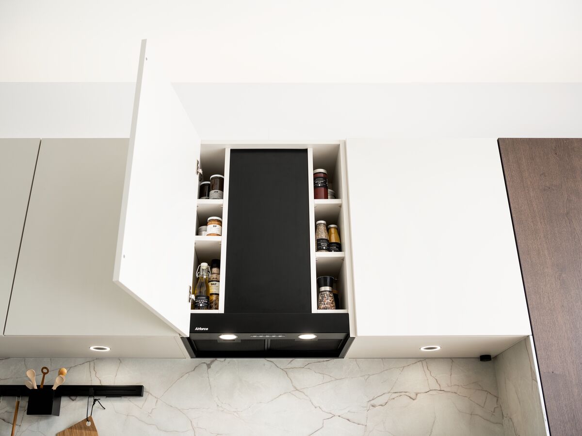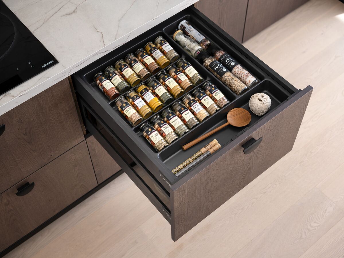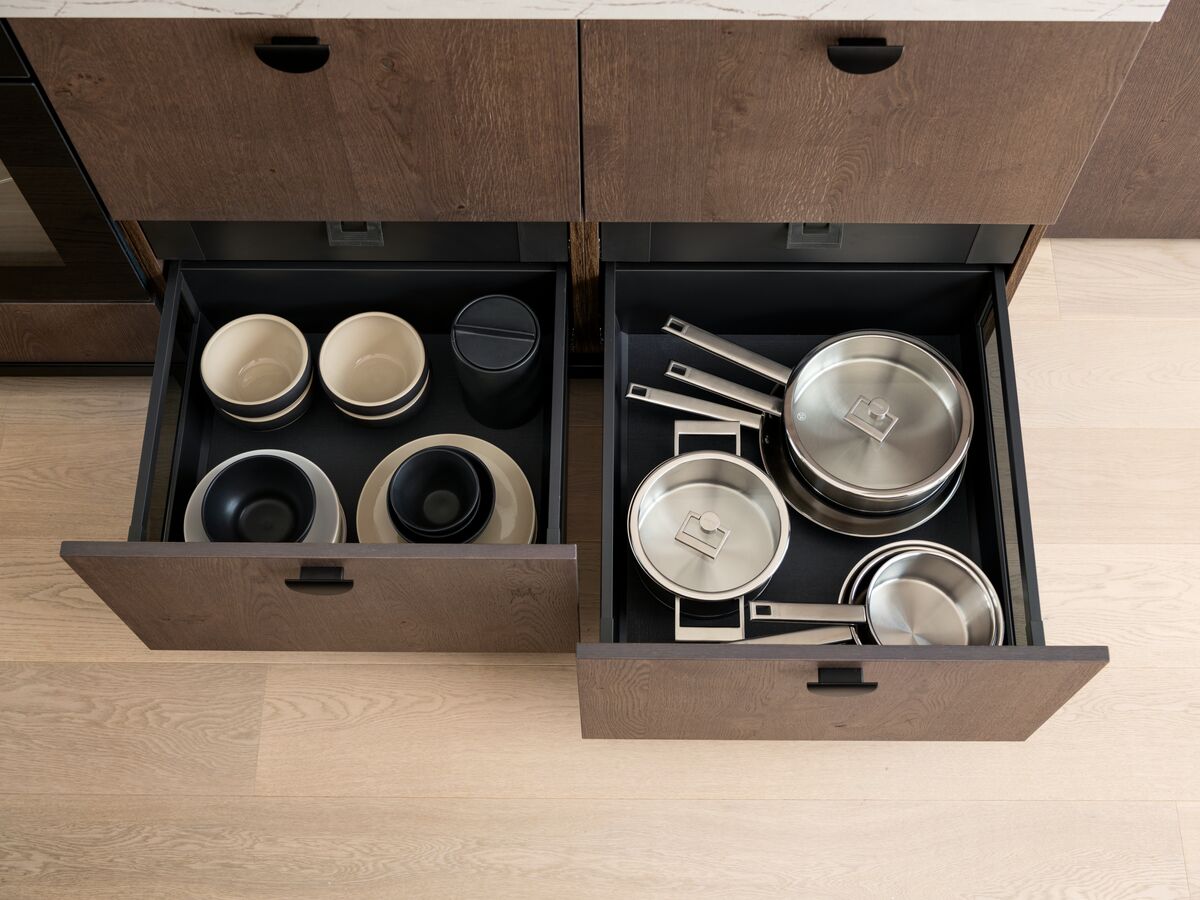 La combinación sutil y elegante de la madera «Amber oak» y de la encimera «Yule» realzada por unos toques de negro intenso y gráfico sedujo a esta pareja entrada en los cincuenta. En busca de una cocina abierta al salón, funcional y estética, el modelo Bosca Epicerie, que respondía perfectamente a sus necesidades, les conquistó inmediatamente. En familia y entre amigos, disfrutan reuniéndose alrededor de la isla central, que se ha convertido en uno de los lugares más acogedores de su casa.