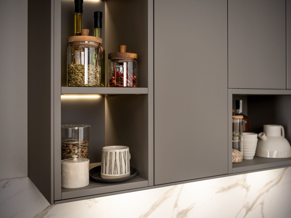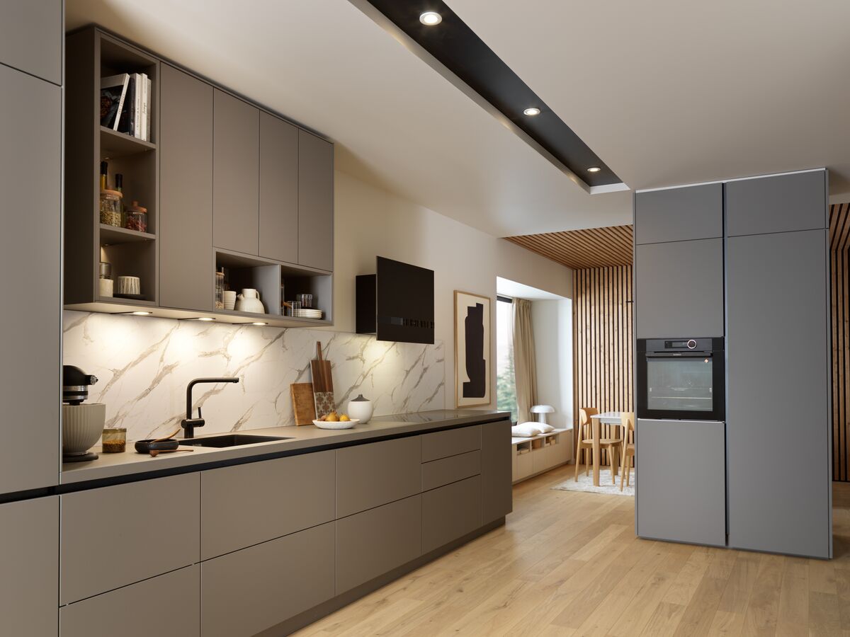 Para equipar su cocina dispuesta longitudinalmente, Oscar y Anne buscaban «EL» flechazo... Se quedaron cautivados por las líneas limpias y modernas de la cocina gris Claystone que adoptaron de inmediato. La pareja, amante del estilo escandinavo, se dejó seducir inmediatamente por el diseño contemporáneo de los muebles y el revestimiento de madera que le aporta al espacio vital un carácter natural. La disposición de los elementos desde el suelo hasta el techo permite optimizar el espacio de almacenamiento, lo que terminó de convencer a Oscar y Anne a quienes les gusta que su interior esté bien organizado.