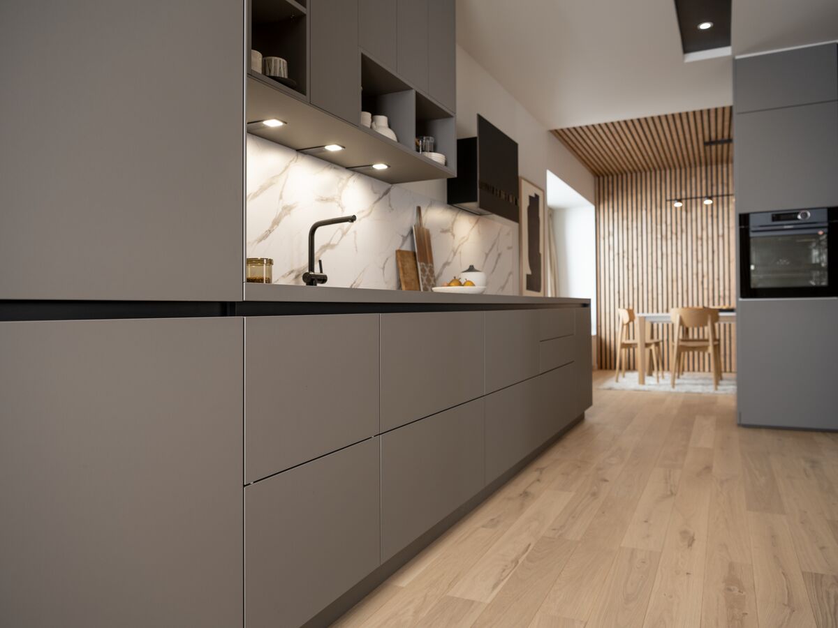 Cocina gris moderna lineal