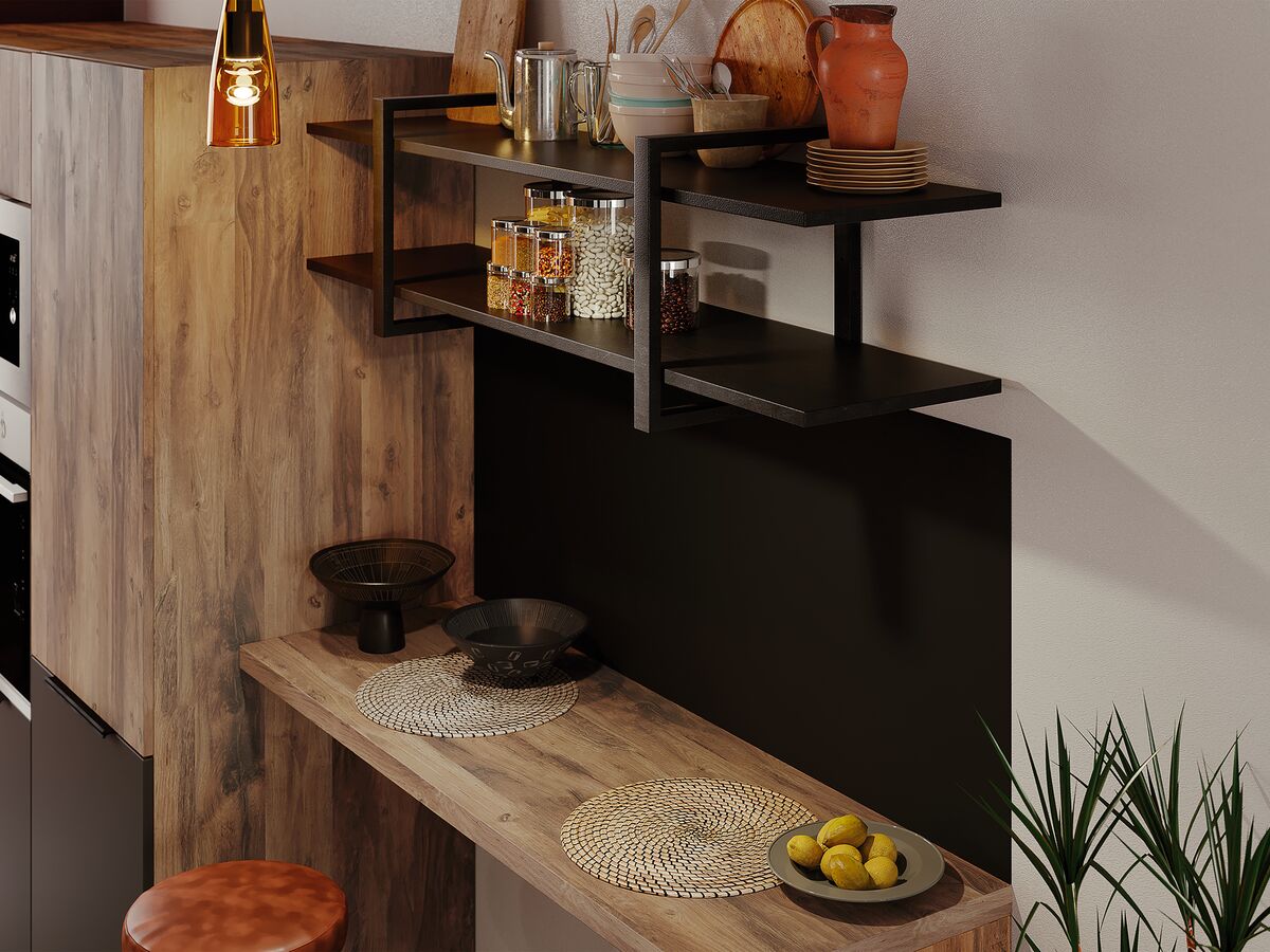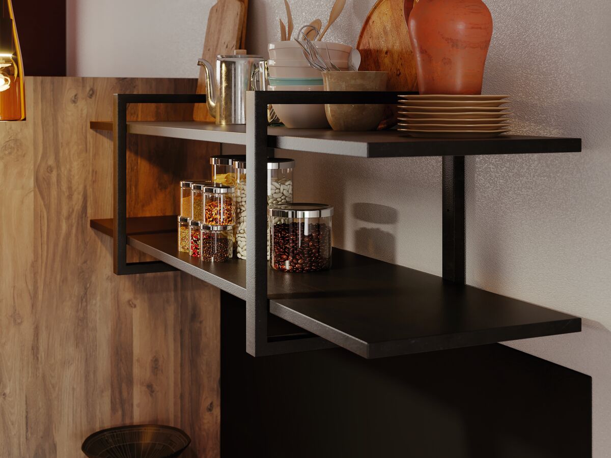 Si había una habitación de su piso madrileño que María y Diego querían que fuera tan agradable como funcional, ¡esa era su cocina! Siempre muy ocupados preparando ricas comidas para sus dos hijos y sus amigos, la pareja se enamoró literalmente de este modelo de cocina con un diseño contemporáneo realzado con estantes Metal Line y una auténtica atmósfera caracterizada por la mezcla de materiales. La cocina de María y Diego, organizada a lo largo, se impone naturalmente como un espacio vital central de su pequeño y acogedor hogar. ¡Y a los niños les encanta especialmente desayunar en los taburetes altos de la esquina comedor!