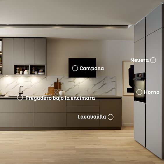 Disfruta de electrodomésticos integrables perfectamente adaptados a tu cocina, a nivel estético y funcional, porque la ubicación es tan importante como la estética para un uso cómodo. Para una cocina a tu imagen, elige un equipamiento de diseño con un estilo marcado o, al contrario, totalmente ocultos para una estética más depurada.