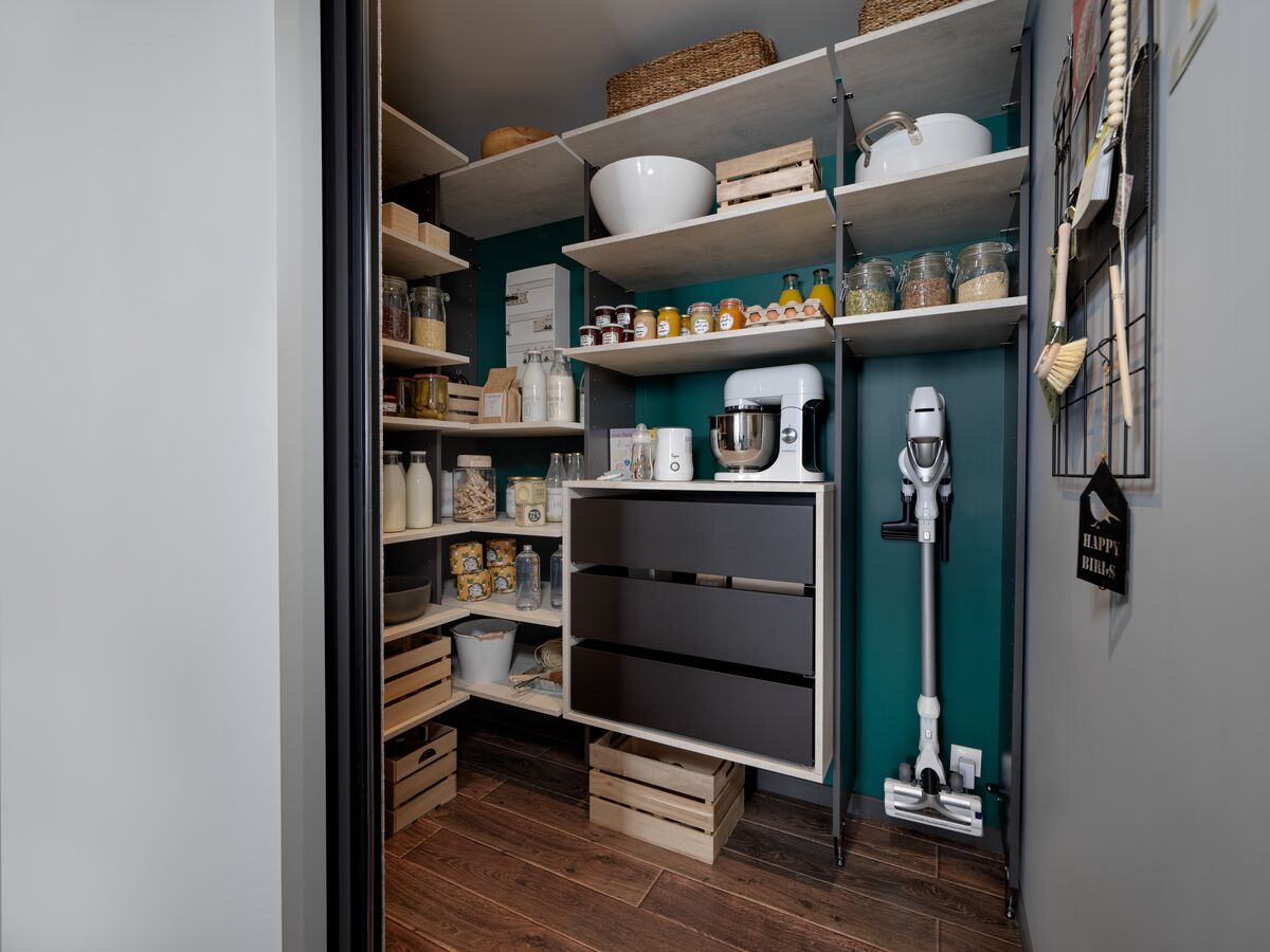 Organizar tu hogar nunca había sido tan fácil como con todas las posibilidades de esta bodega a medida junto a la cocina. ¿Cuáles son las ventajas de los estos muebles y baldas? Proporcionan un espacio aprovechado al máximo y polivalente, para organizar el día a día en casa.