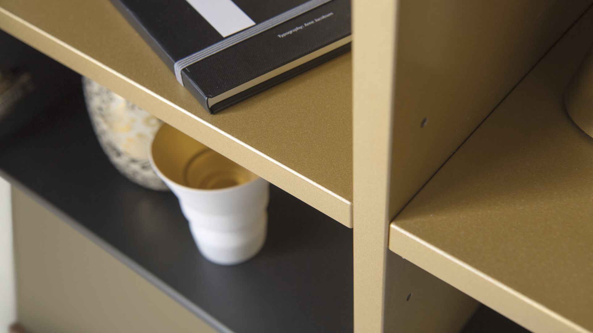 Mueble de diseño en Laca micron de color Iron Black y Gold.