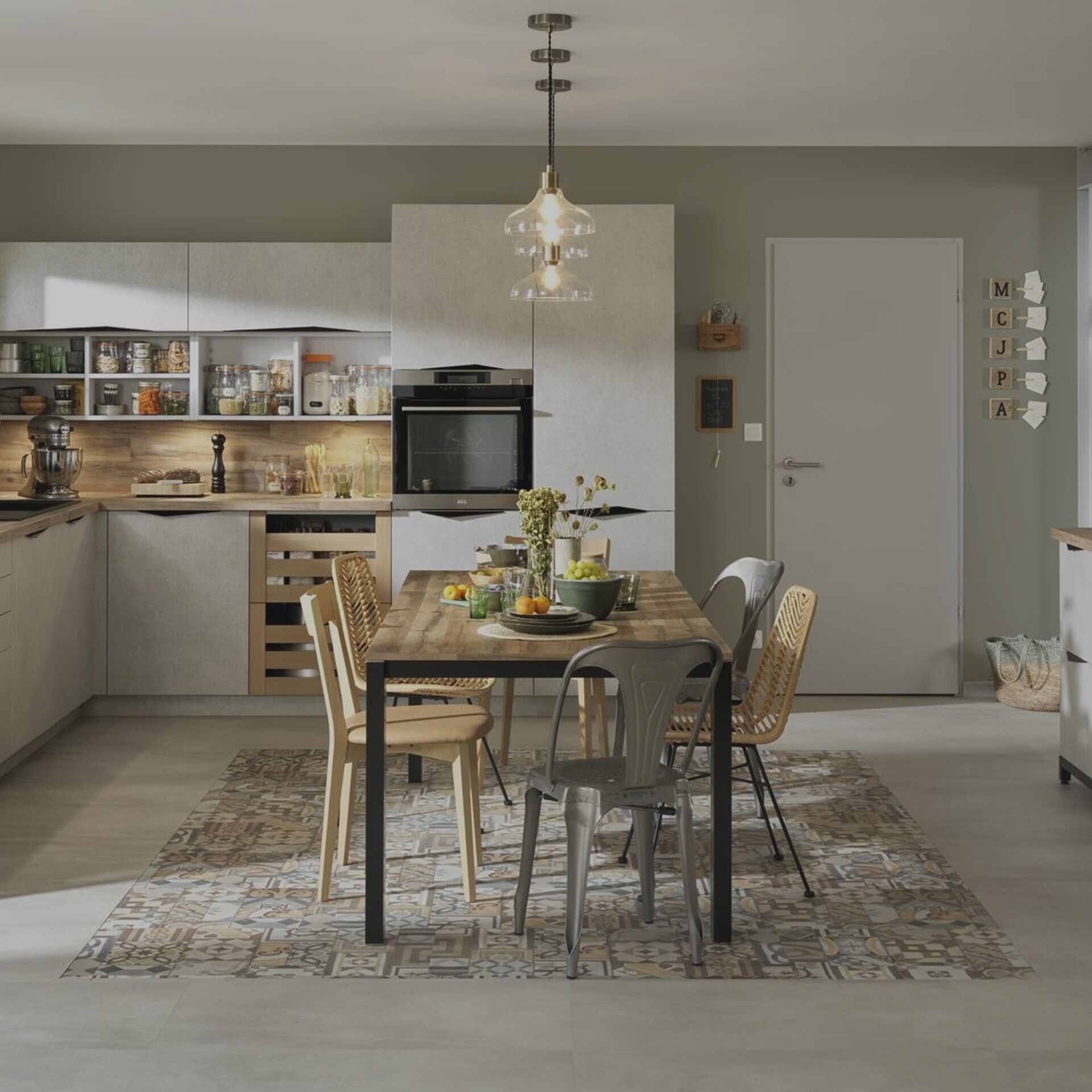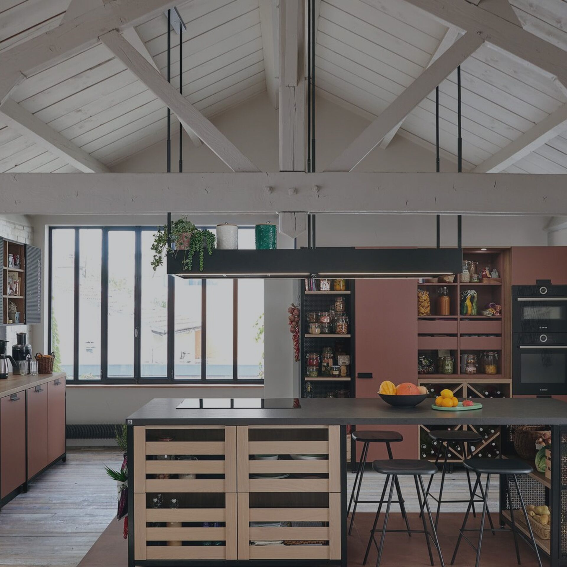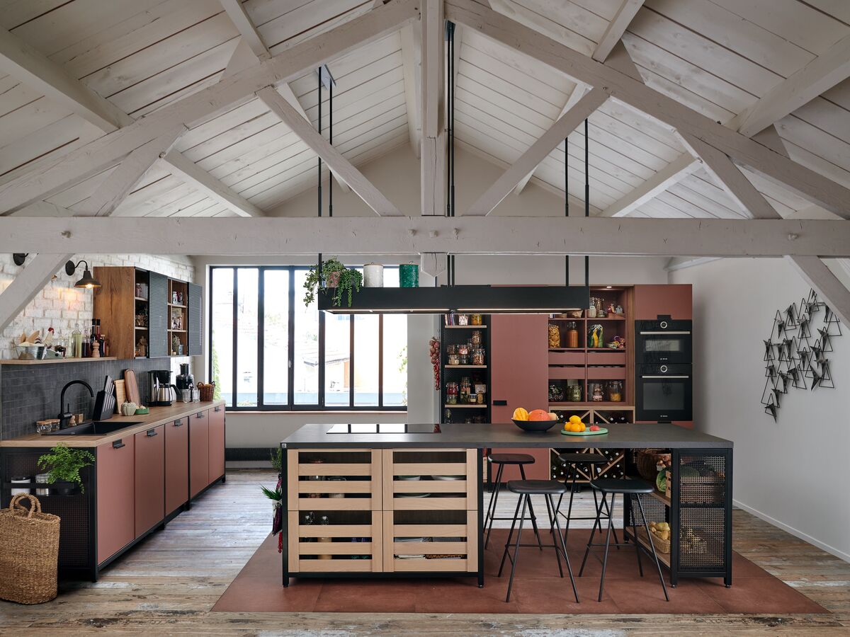 Au-delà d’être un lieu de préparation, la cuisine Épicerie est lieu de stockage et d’inspiration. On s'est dit qu'il fallait dessiner à la gomme, en intégrant des grilles de garde-manger, qui apportent des fonctionnalités, de la respiration pour les produits et de la transparence sur toutes les denrées qui peuvent nous inspirer.