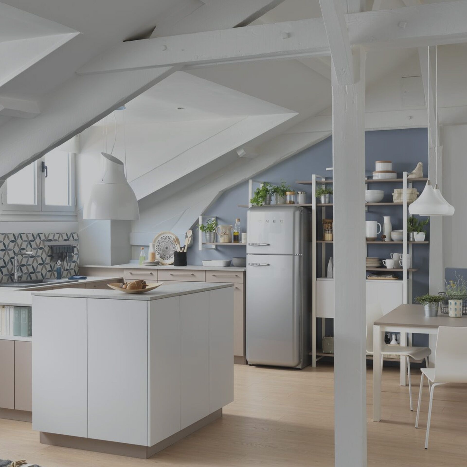 Cette cuisine séduit par son esprit nordique, avec des éléments graphiques forts et discrets s’intégrant parfaitement dans les contraintes de la pièce. Nous avons combiné plusieurs systèmes d’ouvertures de portes afin d’obtenir une cuisine épurée et pratique. Notre perpétuel défi est de combiner le beau et le fonctionnel, pari réussi dans ce projet !