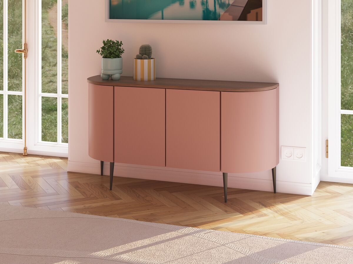 Les meubles aux formes arrondies apportent une touche de légèreté et de fluidité à l’ensemble, tandis que les niches ouvertes permettent de personnaliser l’espace avec quelques objets déco ou accessoires du quotidien. Le plan de travail effet marbre coloris Gold Marmor vient parfaire l’ensemble en ajoutant une note raffinée et contemporaine.