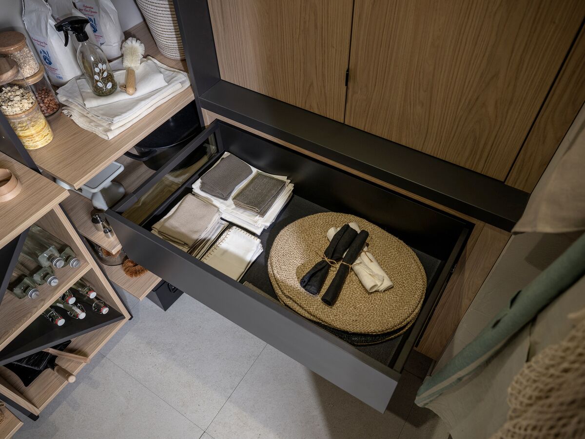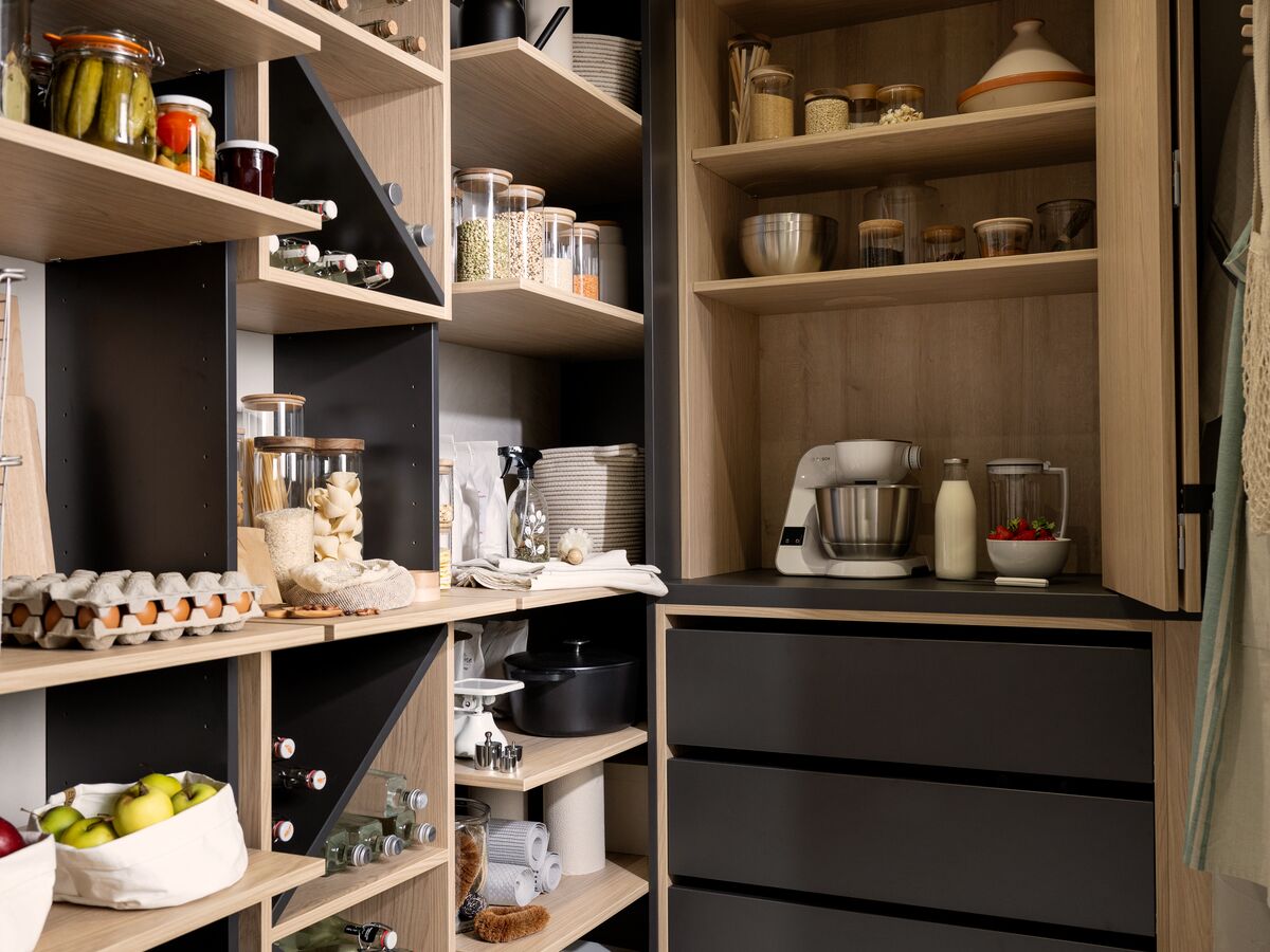 cellier invite à un mode de vie organisé et serein. Son coloris Caneo en gris