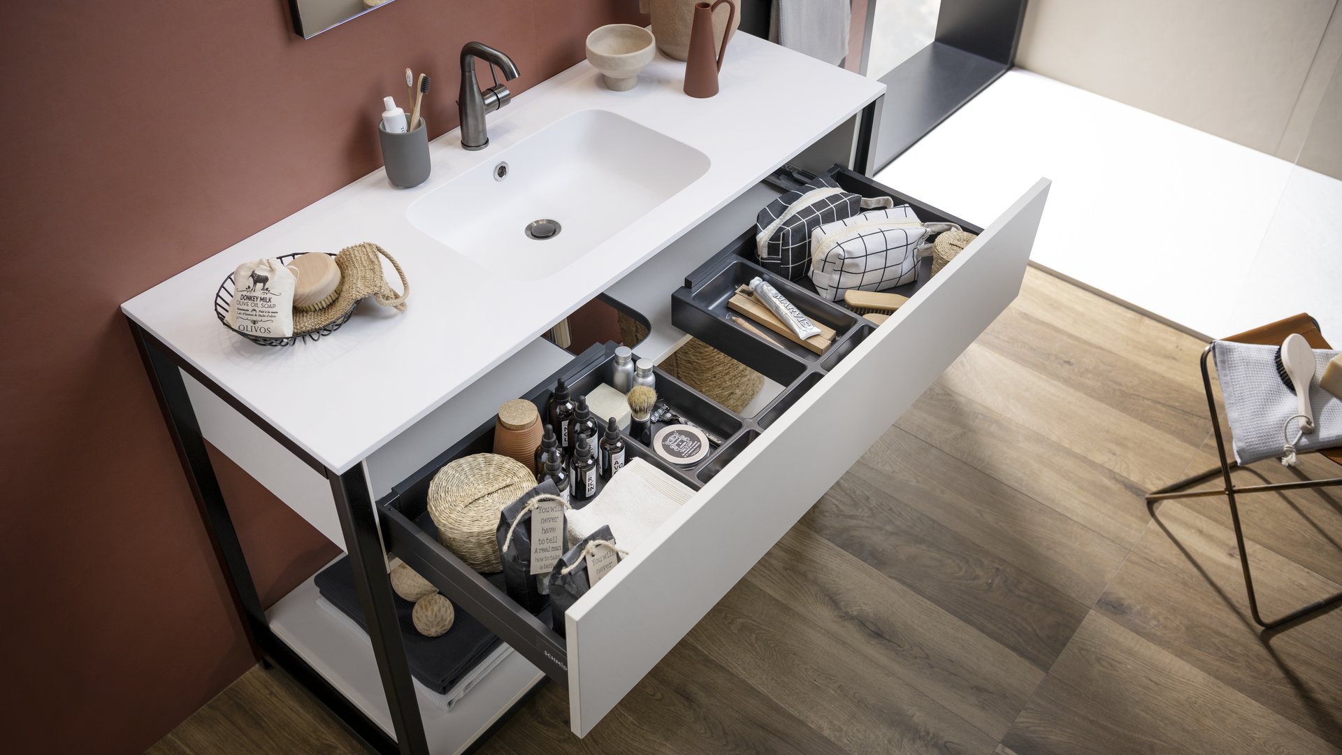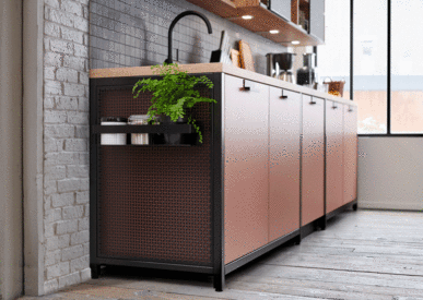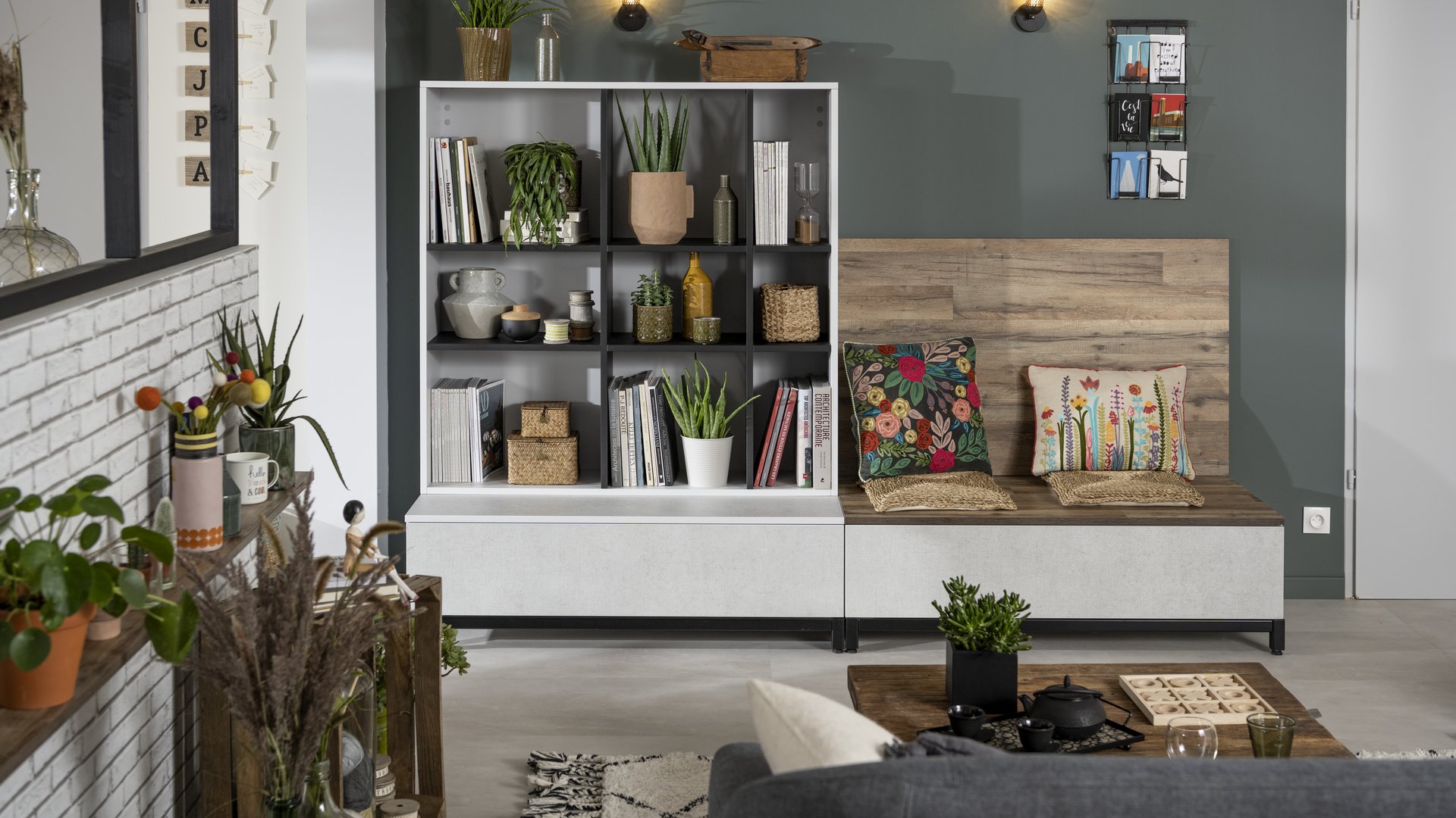 Ouvert ou fermé, effet bois ou grillage, vous pouvez varier les façades selon vos envies. Les meubles coulissants apportent du stockage supplémentaire et les façades coulissantes permettent quant à elles un accès rapide aux différents éléments rangés dans le meuble.