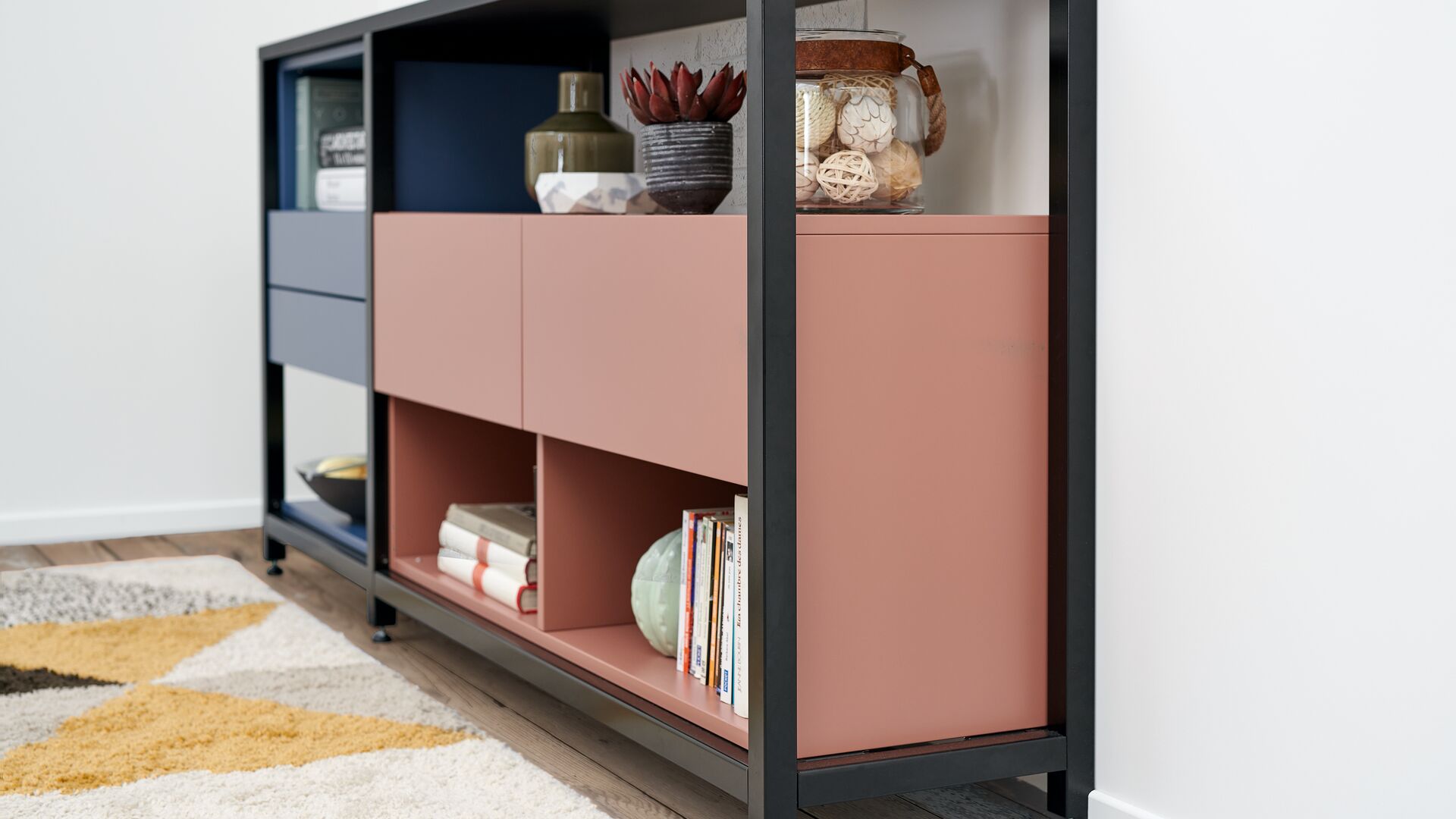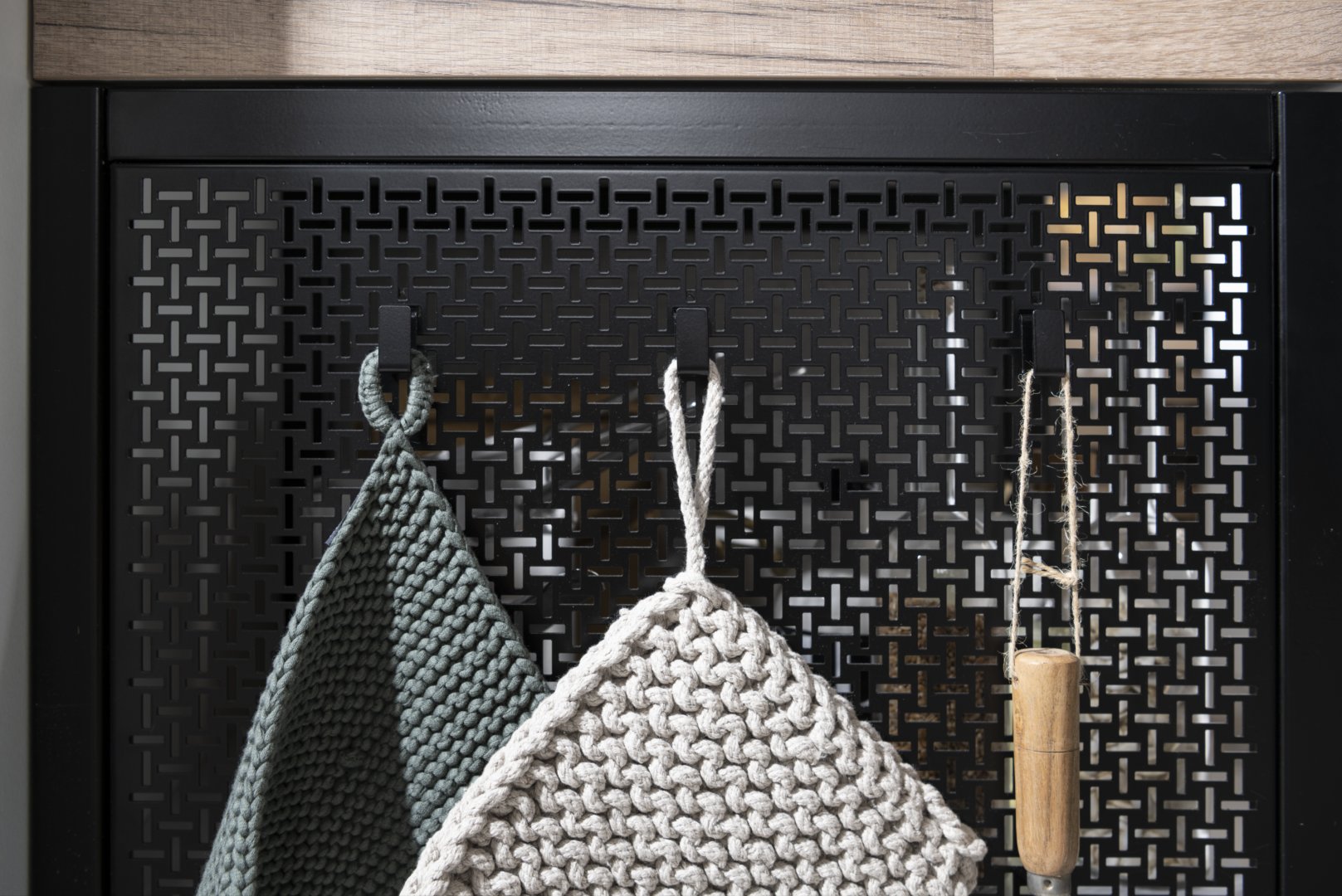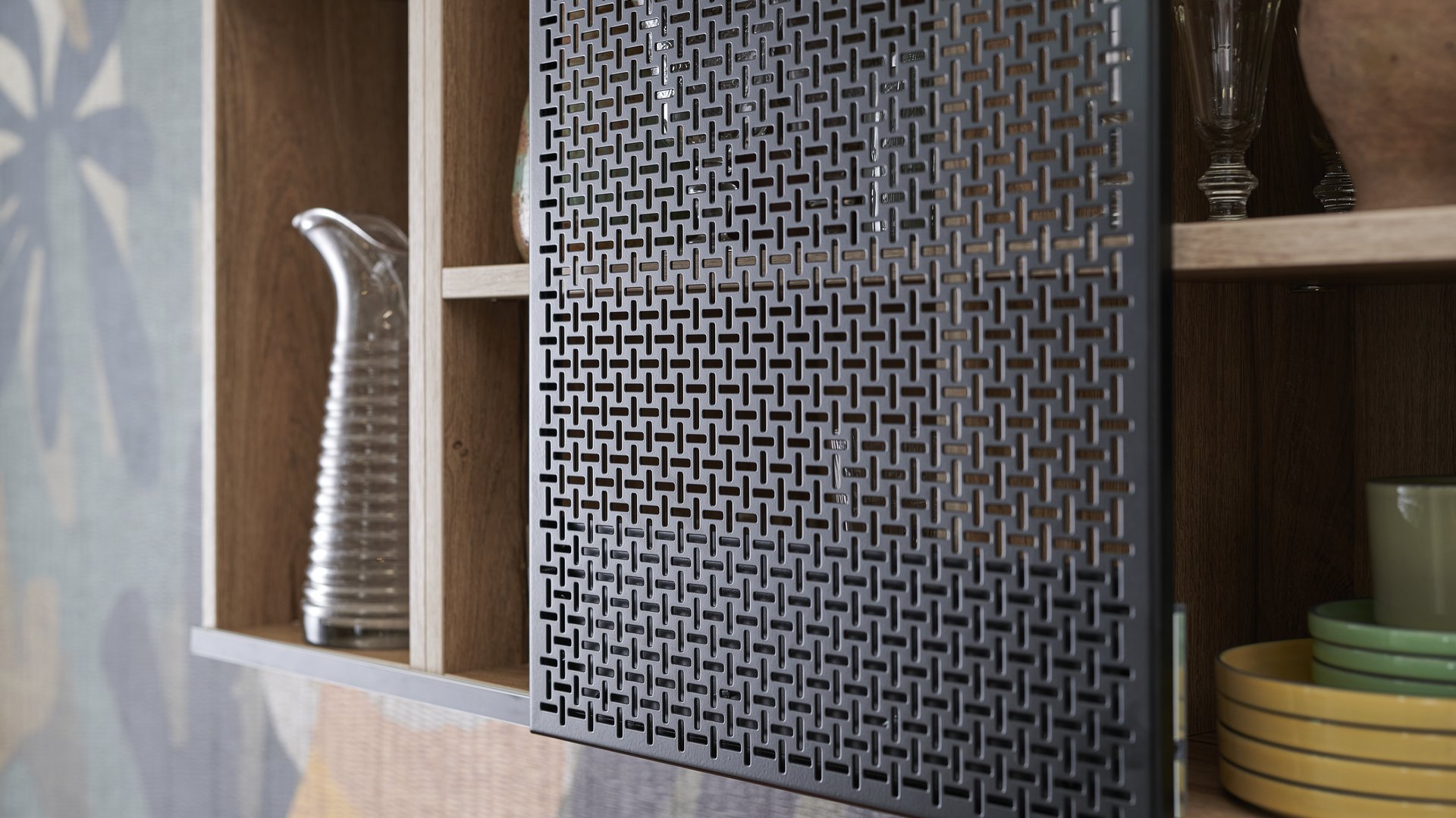 Les meubles design avec façades grillagées (motif exclusif Schmidt) vont vous permettre d’accrocher vos accessoires préférés grâce aux crochets, d’avoir vos plus belles plantes à portée de main avec le support à plante et d’exposer vos bocaux grâce à notre étagère !