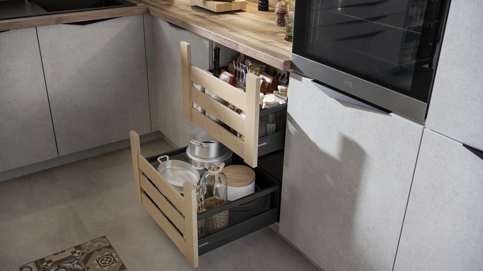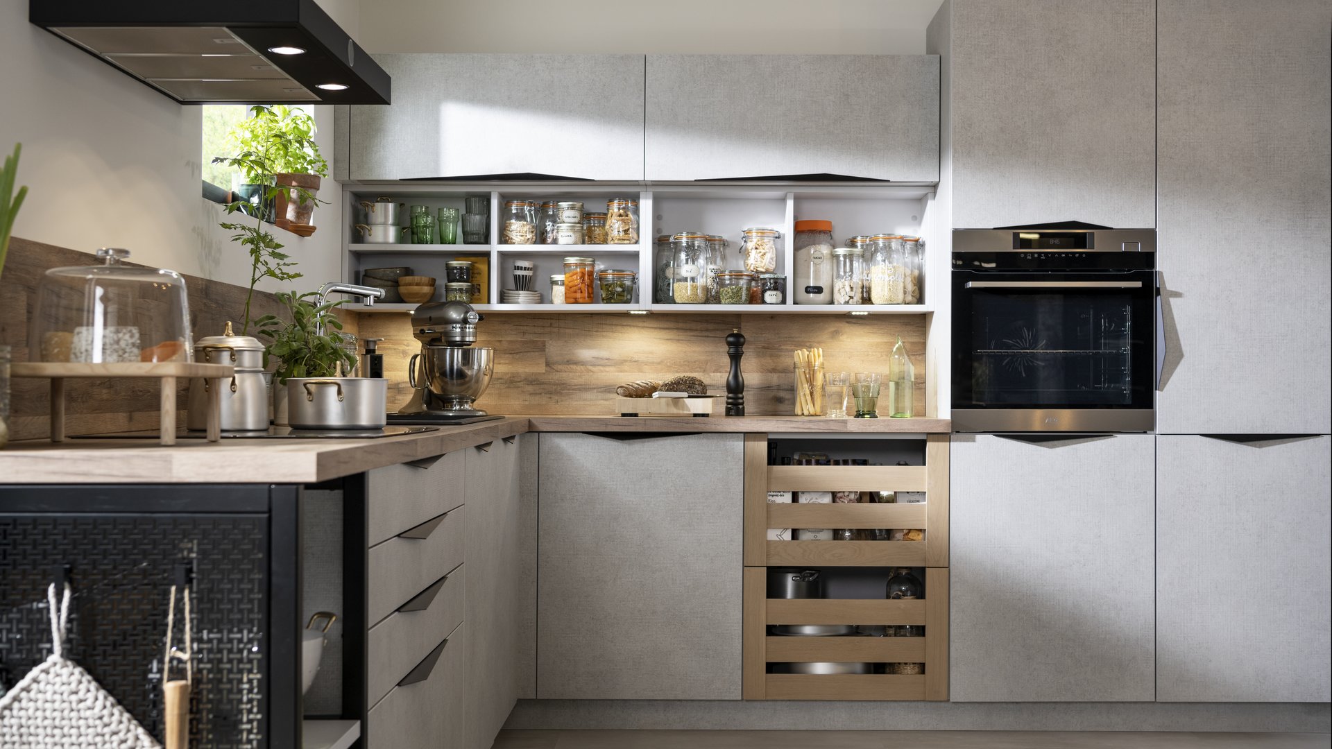 C’est grâce aux différents éléments qui l’a composent que la cuisine Epicerie porte si bien son nom. Chaque fonctionnalité a été réfléchie et pensée par nos designers, afin de répondre avant tout à un besoin de fonctionnalité, principe indispensable et fondamental lors de la conception de votre cuisine. Vous rêvez de façades grillagées pour accrocher vos plus beaux accessoires et les avoir à portée de main en toutes circonstances ? D’un meuble spécialement conçu pour ranger vos plus belles bouteilles ou esprit caisse pour se sentir comme à l’épicerie ? Ou encore de façades coulissantes, grillagées ou en bois, pour apporter du style et de l’authenticité à votre intérieur ? Alors n’hésitez plus, tout ce dont vous rêvez est chez Schmidt !