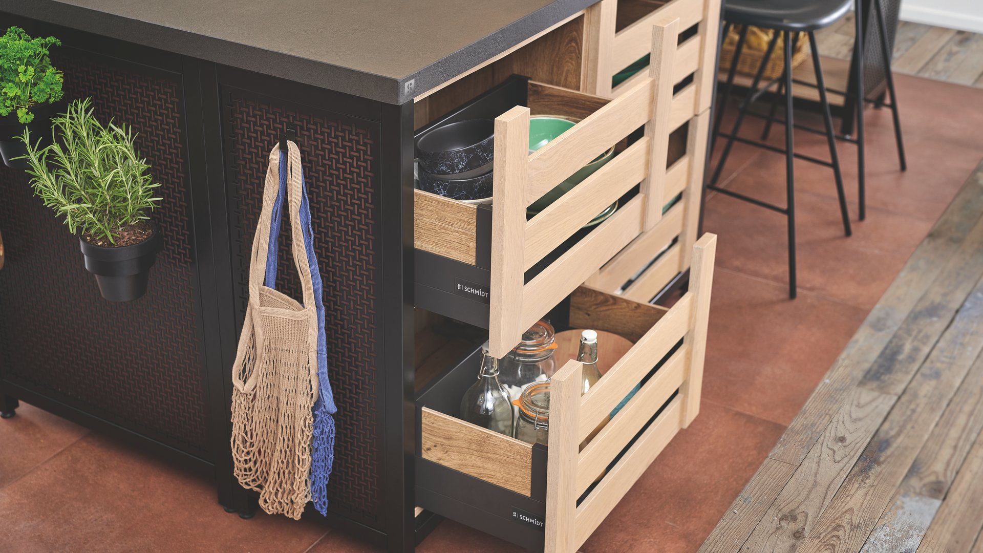Ramenez de la chaleur et de l’authenticité dans votre cuisine grâce au meuble esprit caisse. La façade est une exclusivité Schmidt et a été dessinée par les designers du Studio 5•5. Made in France et conçu à partir de bois massif (chêne), ce meuble a tout pour vous séduire !