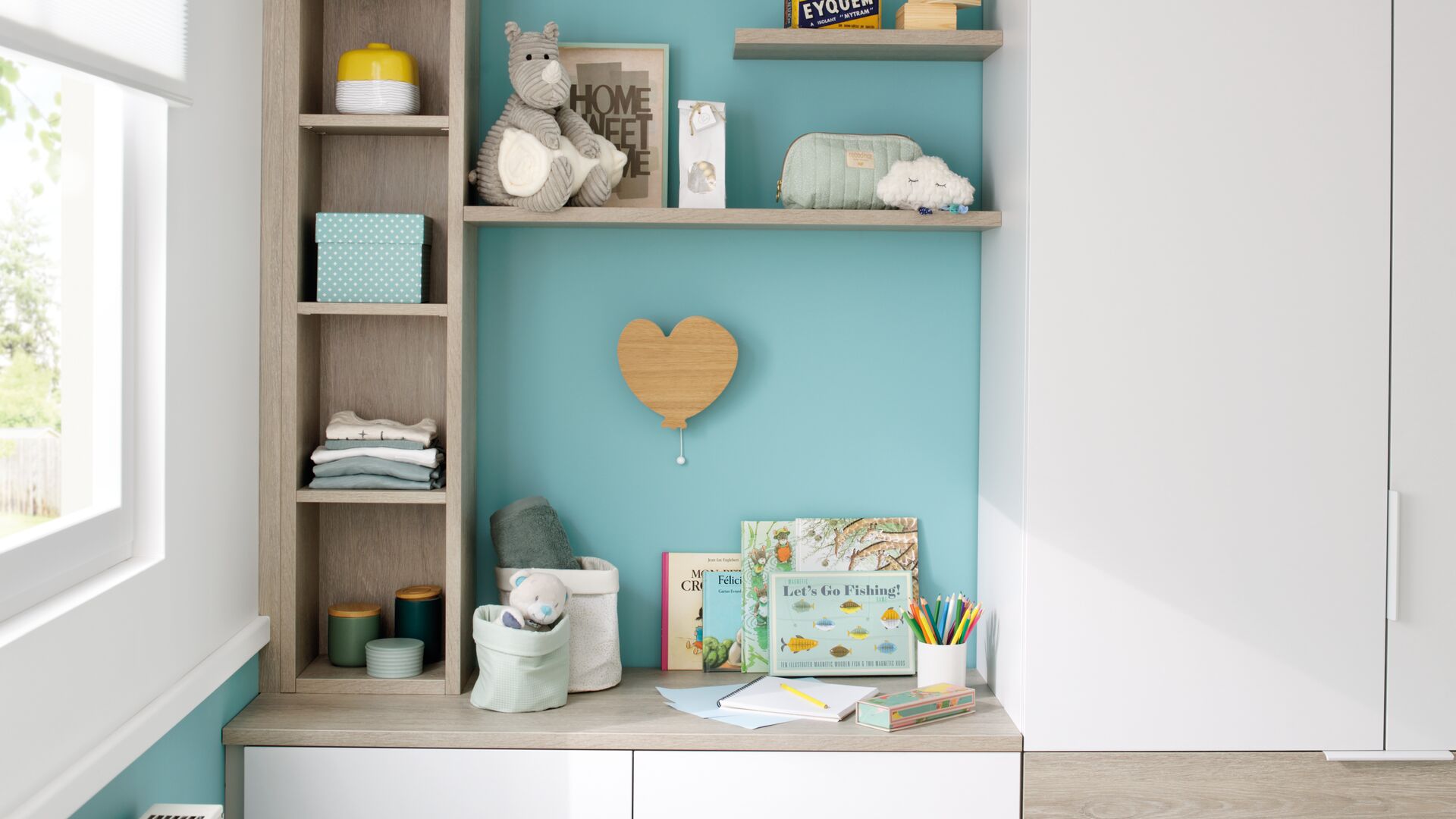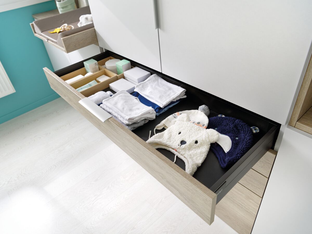 Ce mobilier de chambre pour enfant a été pensé pour conjuguer rangements généreux et atmosphère apaisante. Ses meubles dotés d’étagères et de tiroirs profonds accueillent facilement jouets, peluches ou accessoires volumineux, permettant de remettre de l’ordre en un instant, même après les jeux les plus mouvementés. Chaque espace est exploité avec intelligence pour que rien ne traîne et que tout trouve sa place. Les coloris Iceland et Celest apportent quant à eux une touche douce et sereine, idéale pour créer un univers rassurant et harmonieux. Une solution complète qui associe fonctionnalité, esthétique et confort dans l’aménagement de la chambre.