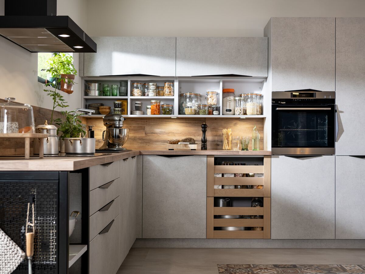 Envie de commencer votre projet cuisine ? Découvrez notre configurateur 3D en ligne et testez vous-même les nombreuses possibilités de personnalisation offertes. Une large sélection d'implantations, de couleurs de meubles et de plans de travail sont à votre disposition. Vous pourrez même assortir la couleur de vos murs et sols facilement !