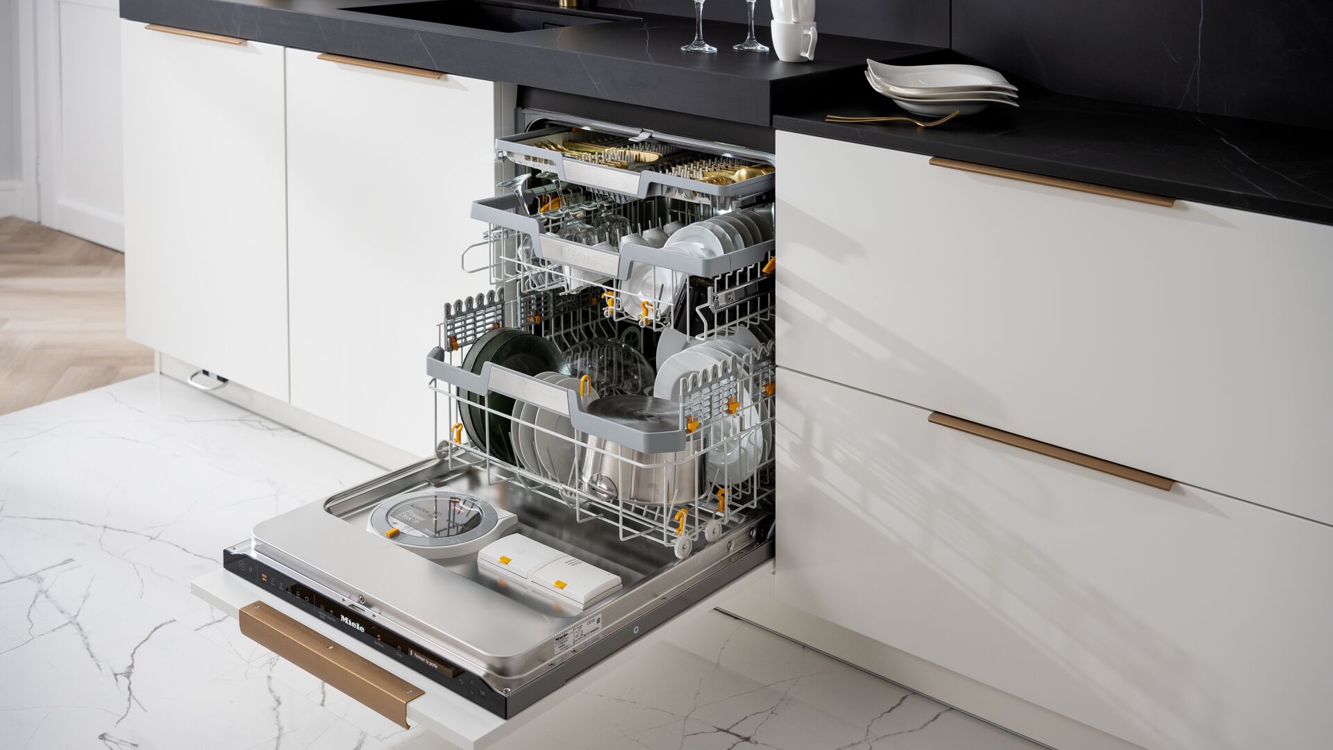 MIELE vous permet de cacher votre lave-vaisselle derrière la porte de votre cuisine sans poignée ! Au-delà de ce design épuré, votre vaisselle bénéficiera d’un résultat de lavage exceptionnel, grâce au dosage automatique de lessive AutoDos.