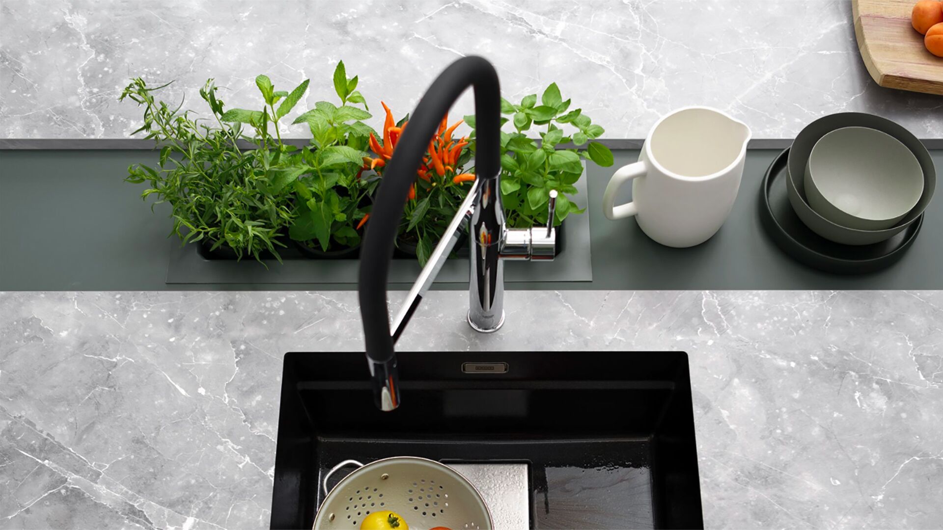 La robinetterie est très sollicitée dans votre cuisine et participe significativement à son rendu final. Chromée, satinée, graphique ou intemporelle, le choix est vaste ! Optez pour cette finition aspect noir mat pour créer la différence. Côté pratique, ce mitigeur GROHE est doté d'un bec haut pour remplir facilement les grands récipients.