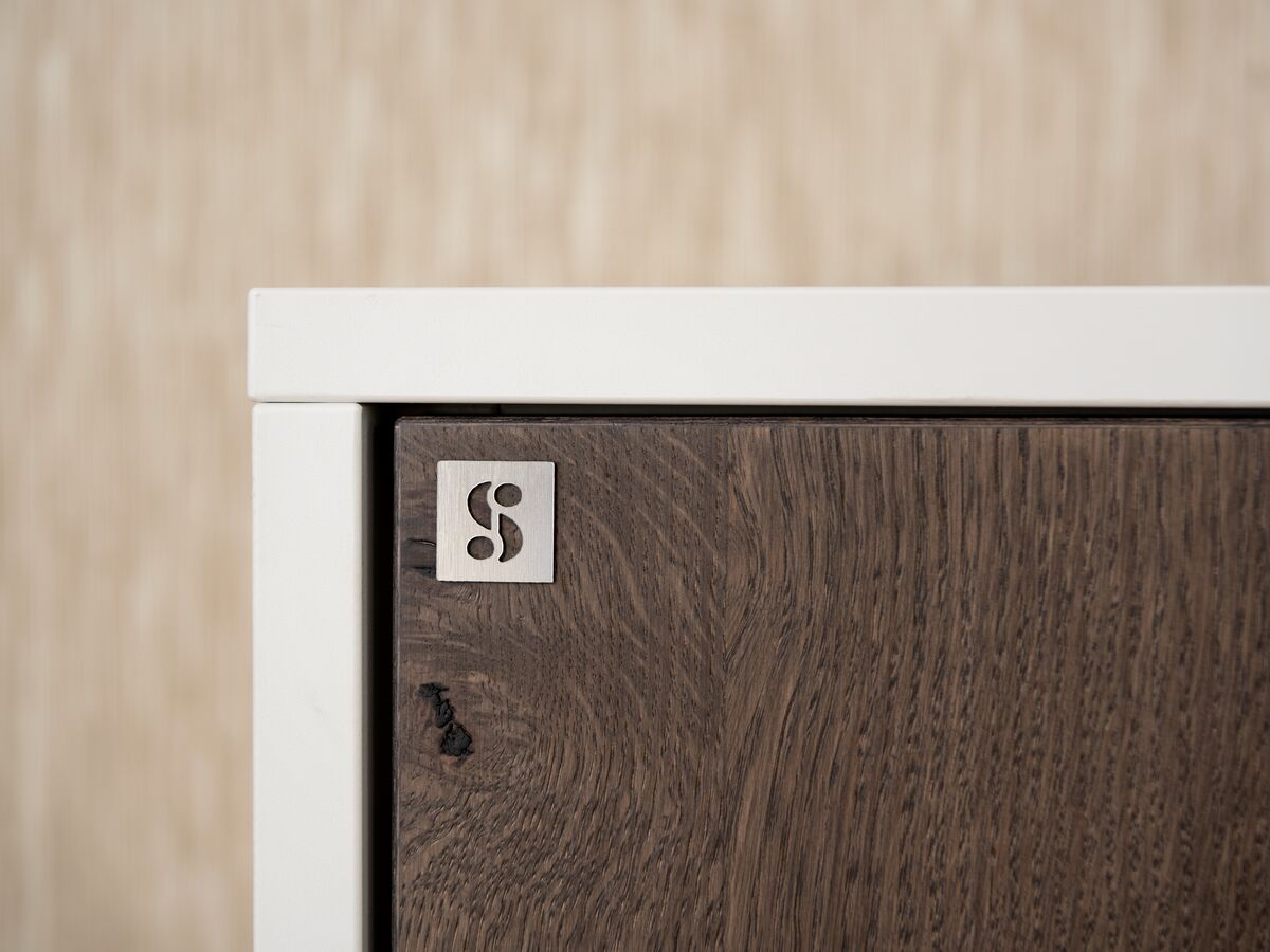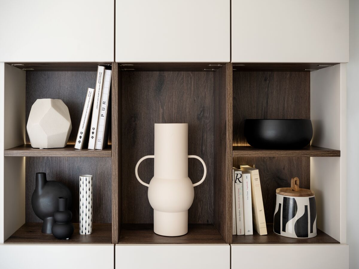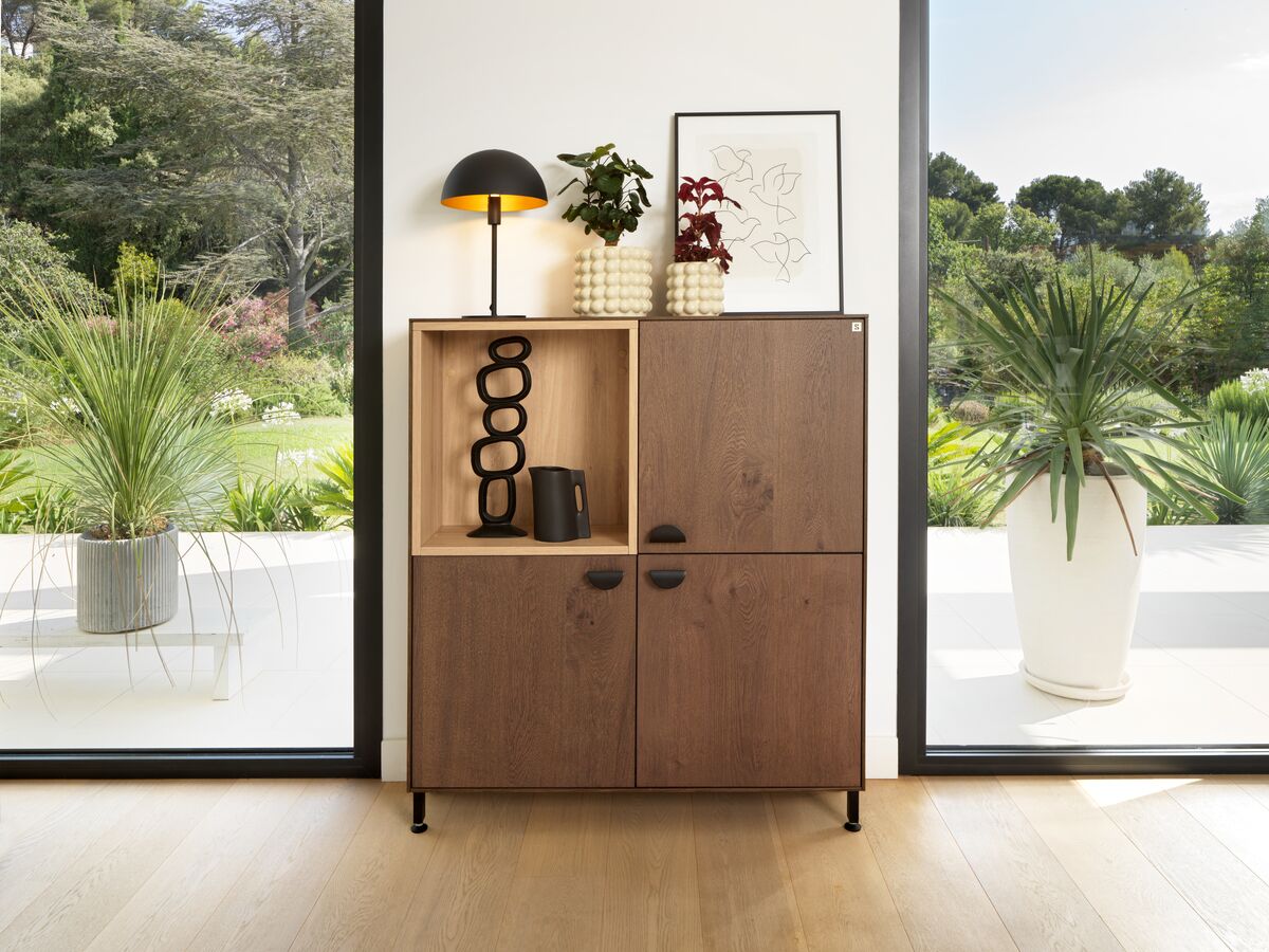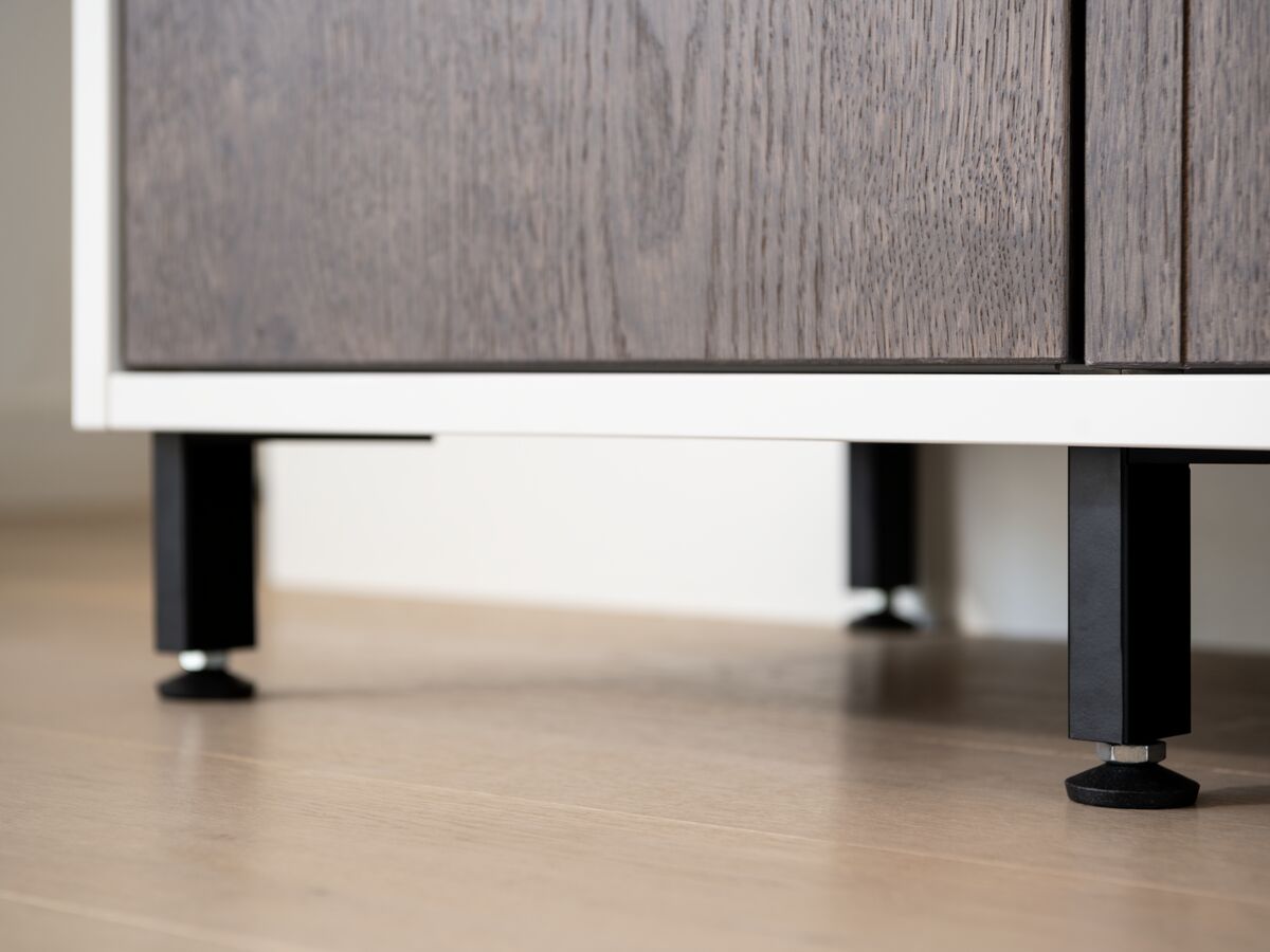 Om hun woonkamer aan te kleden, is het stel vijftigers gevallen voor deze lage buffetkast. Dit meubel hoort bij hetzelfde gamma als hun open keuken en is een absolute elegante decoratieve aanwinst voor hun grote livingroom. Hij creëert op een harmonieuze wijze een overgang tussen twee verschillende ruimtes. Dit lage designvolle en strakke meubel biedt aanvullende opbergruimte waar het stel naarstig naar op zoek was. Het kleine pluspunt: een bijpassende wandnis en/of vierkant entreekastje zijn tevens verkrijgbaar.