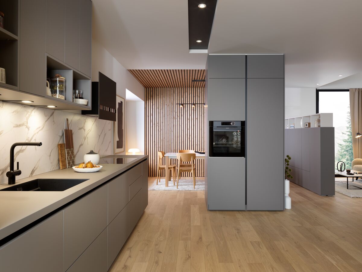 In hun zoektocht naar een rechte keuken hadden Oscar en Anne een duidelijk beeld voor ogen… Ze waren op zoek naar een gestroomlijnd en modern design en vielen direct voor de keuken met grijze Claystone-kleur! Het stel houdt van de Scandinavische stijl en was direct weg van het hedendaagse design van de meubels en de houten afwerking die deze ruimte een natuurlijke uitstraling geeft. Met de indeling van de meubels van de grond tot aan het plafond wordt de opbergruimte optimaal benut en voor Oscar en Anne, die zeer opgeruimd zijn, was dit van doorslaggevende aard.
