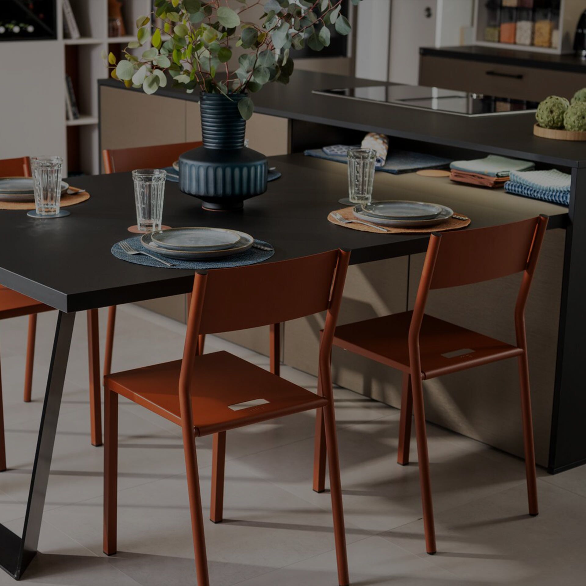 De stijl? De vintage eettafel, met goed verstopte verlengstukken voor wanneer er onverwachte eters voor de deur staan, heeft natuurlijke of gekleurde houttinten. De bartafel gaat de hedendaagse toonbank van een bistro achterna, terwijl de Scandinavische hoge tafel en de houten designtafel mogen pronken met een gekleurd houten blad, ondersteund door bijpassende of aluminium poten. En welke tafelhoogte u ook kiest, u vindt in de catalogus van keukenfabrikant SCHMIDT altijd wel eetkamerstoelen die bij uw smaak en stijl passen.