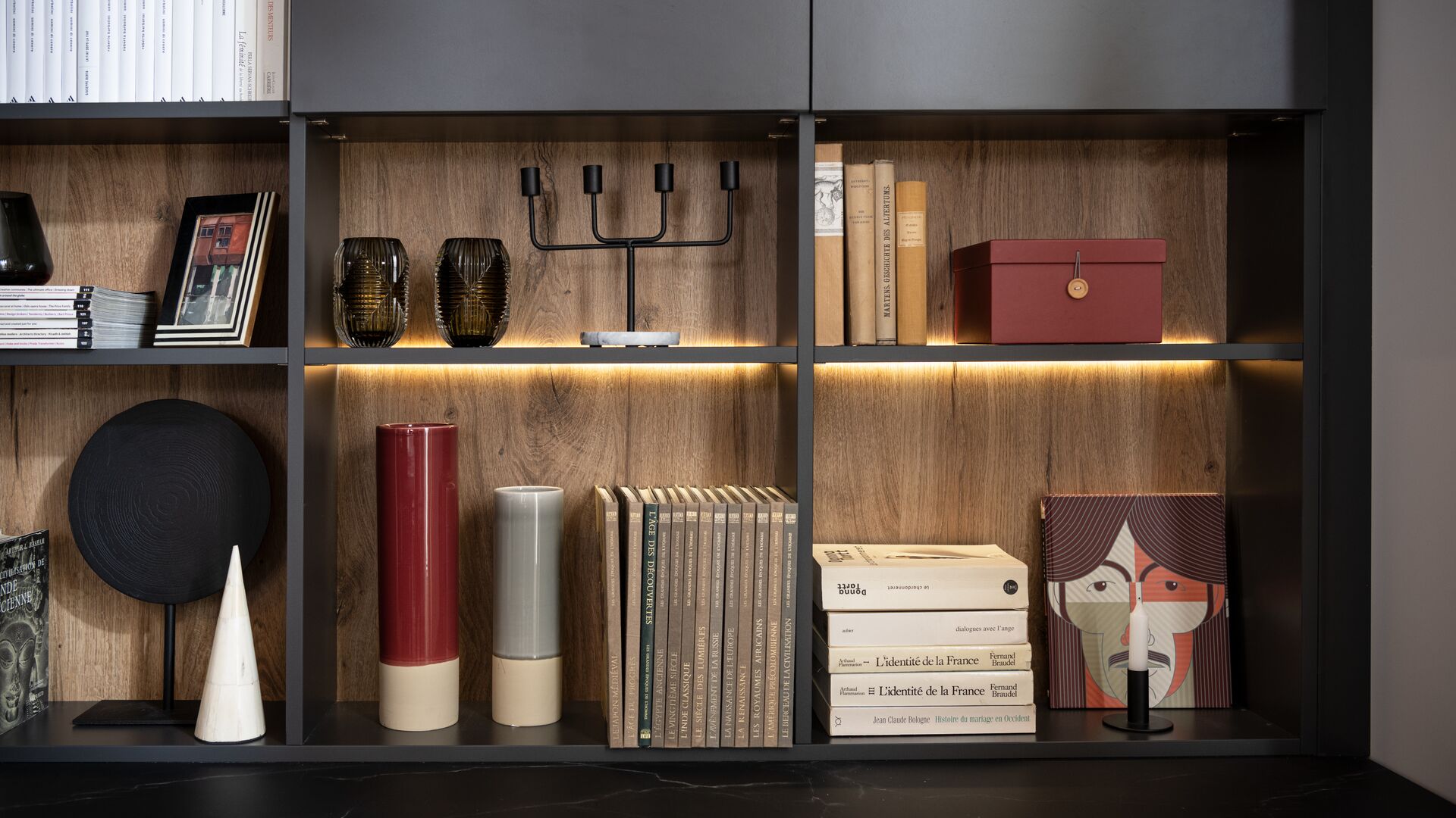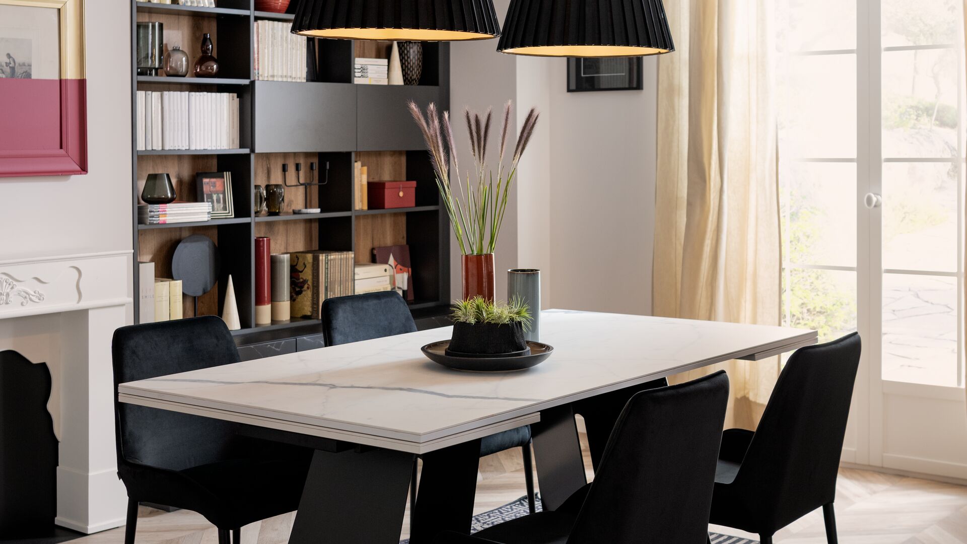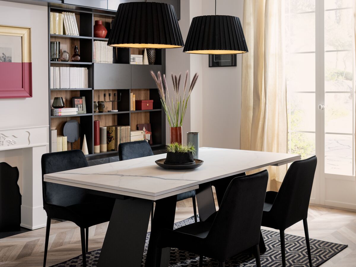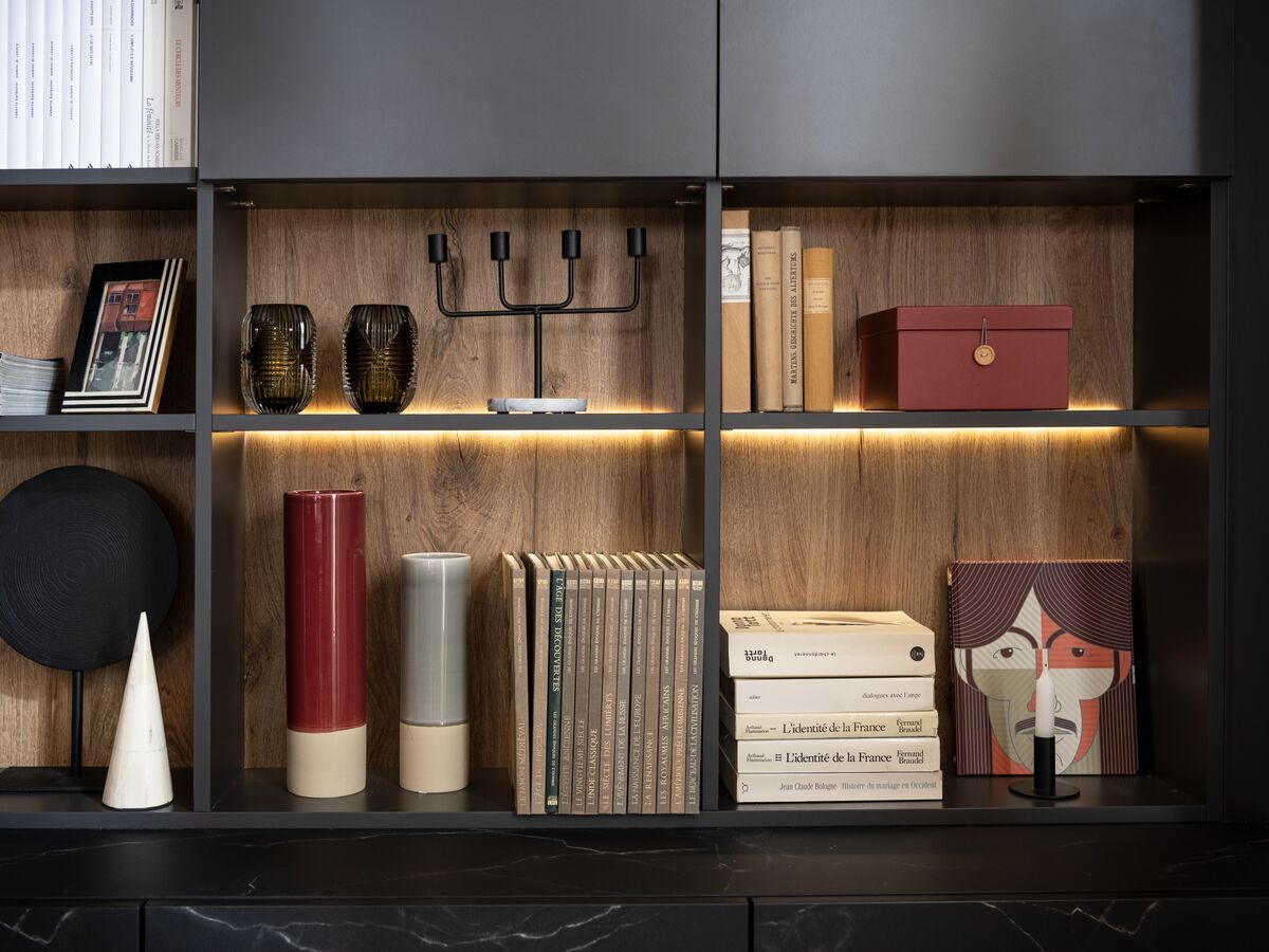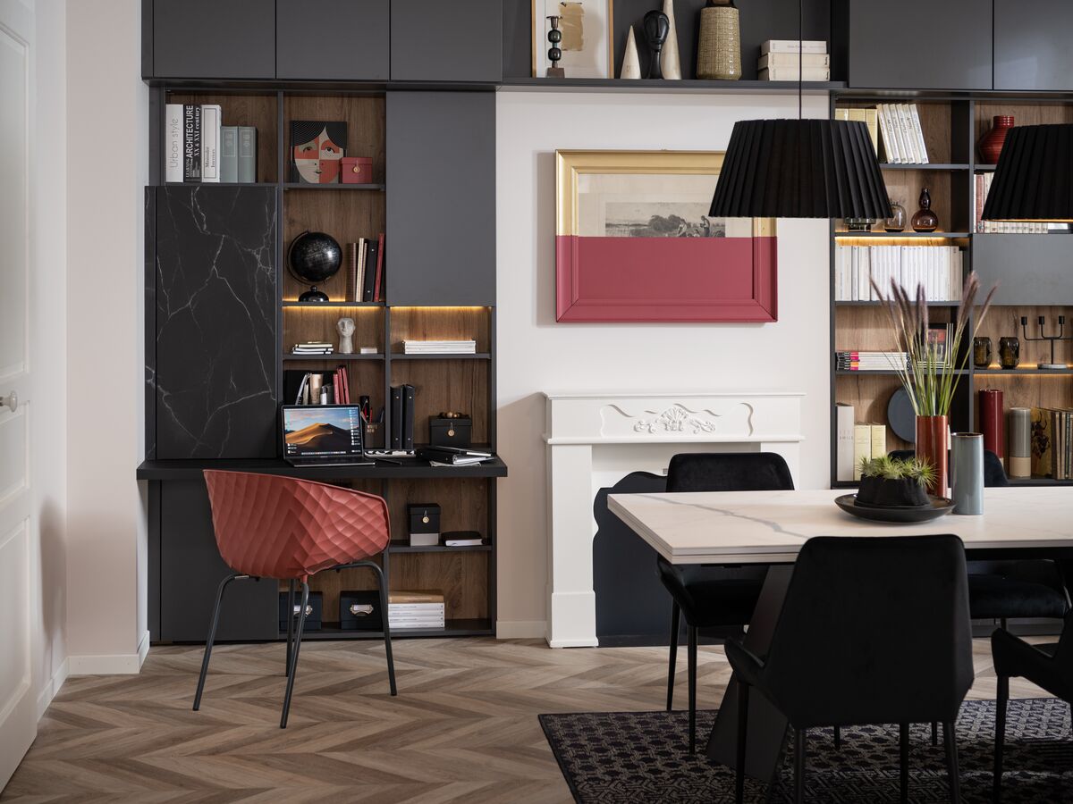 Dennis en Victoria waren op zoek naar een boekenkast voor de wand van hun woonkamer, met zowel een designvolle look als veel opbergruimte. Het oog van dit stel boekenliefhebbers viel direct op het elegante zwarte marmer “Black Marmor” en het houtdecor met de kleur “Alabama” die dit meubel een originele uitstraling geven. Mattéo, de oudste zoon van het gezin, heeft direct beslag gelegd op het ingebouwde bureau dat hij graag gebruikt om zijn huiswerk te maken als hij thuiskomt van het internaat. Kortom, iedereen is blij met deze designvolle boekenkast die vanaf nu deel uitmaakt van het gezin!