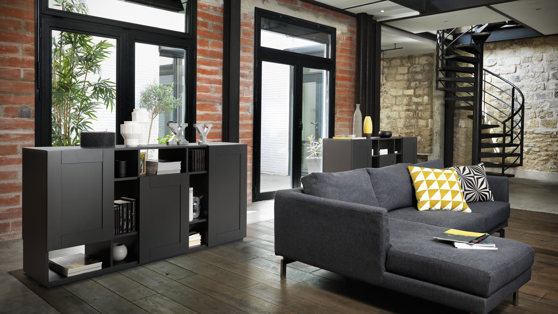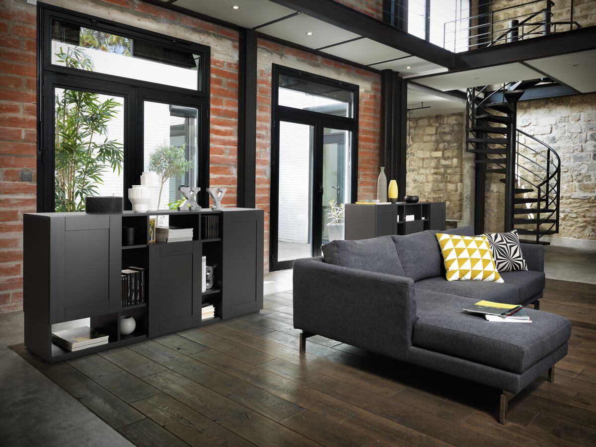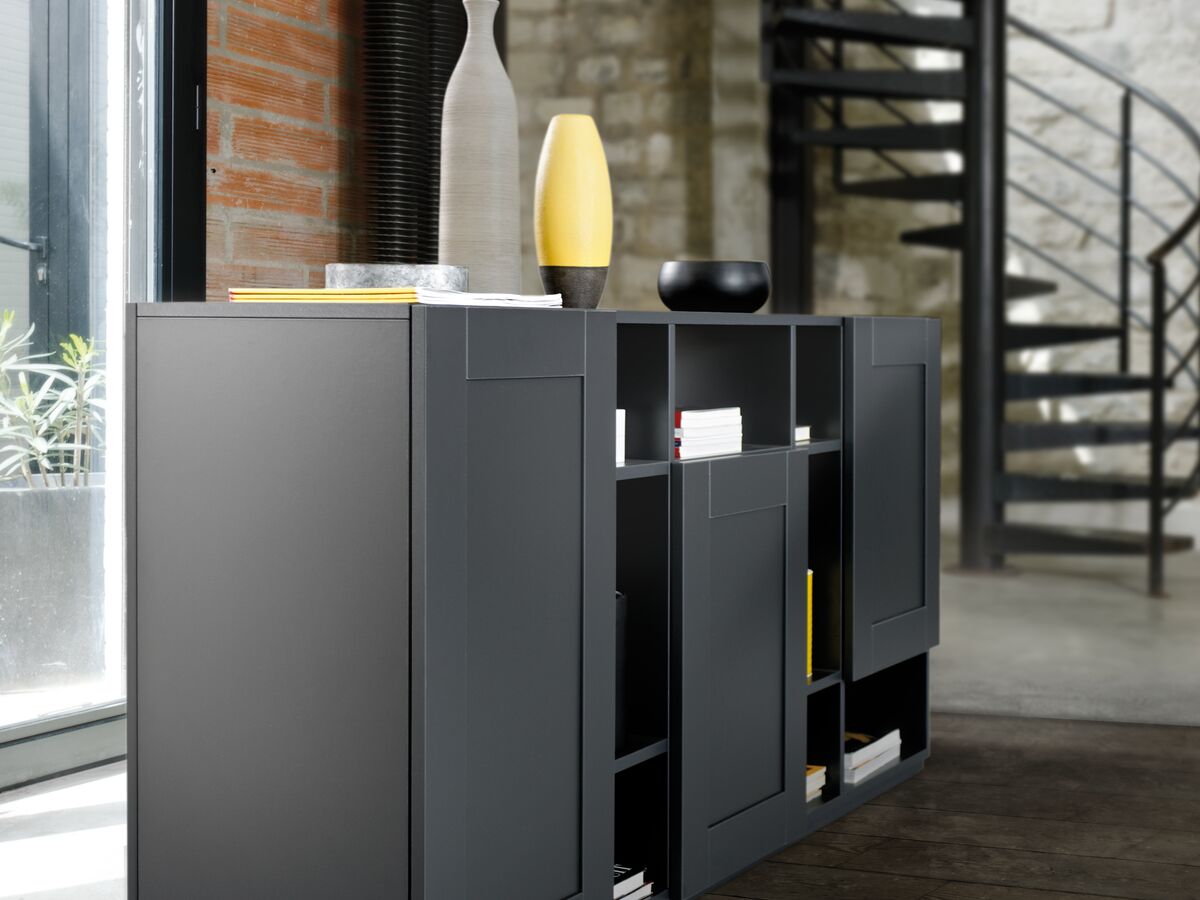 Wie zegt dat een boekenkast tegen de muur moet staan? Schmidt in elk geval niet: wat dacht u van een kookeiland in culturele toogstijl? De boekenkast is toegankelijk van twee kanten en is voorzien van open nissen voor boeken en snuisterijen en fronten zonder handgrepen voor een sublieme designafwerking.