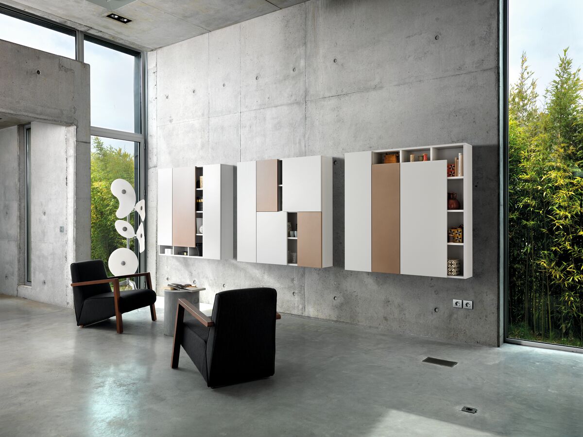 Moderne boekenkast of legplanken? Opbergmeubel of decoratief meubel? Laat uw verbeelding de vrije loop want de mogelijkheden van deze moderne boekenkast op maat zijn bijna oneindig: deuren met kleuren die worden afgewisseld, halfopen legplanken, afmetingen die tot op de millimeter zijn uitgekiend om makkelijk dingen toe te voegen en weg te nemen. Zo wordt opruimen een echte kunst. Deze meubels zijn van melamine in de kleur Celest en micron-lak in de kleur Iron Blush.