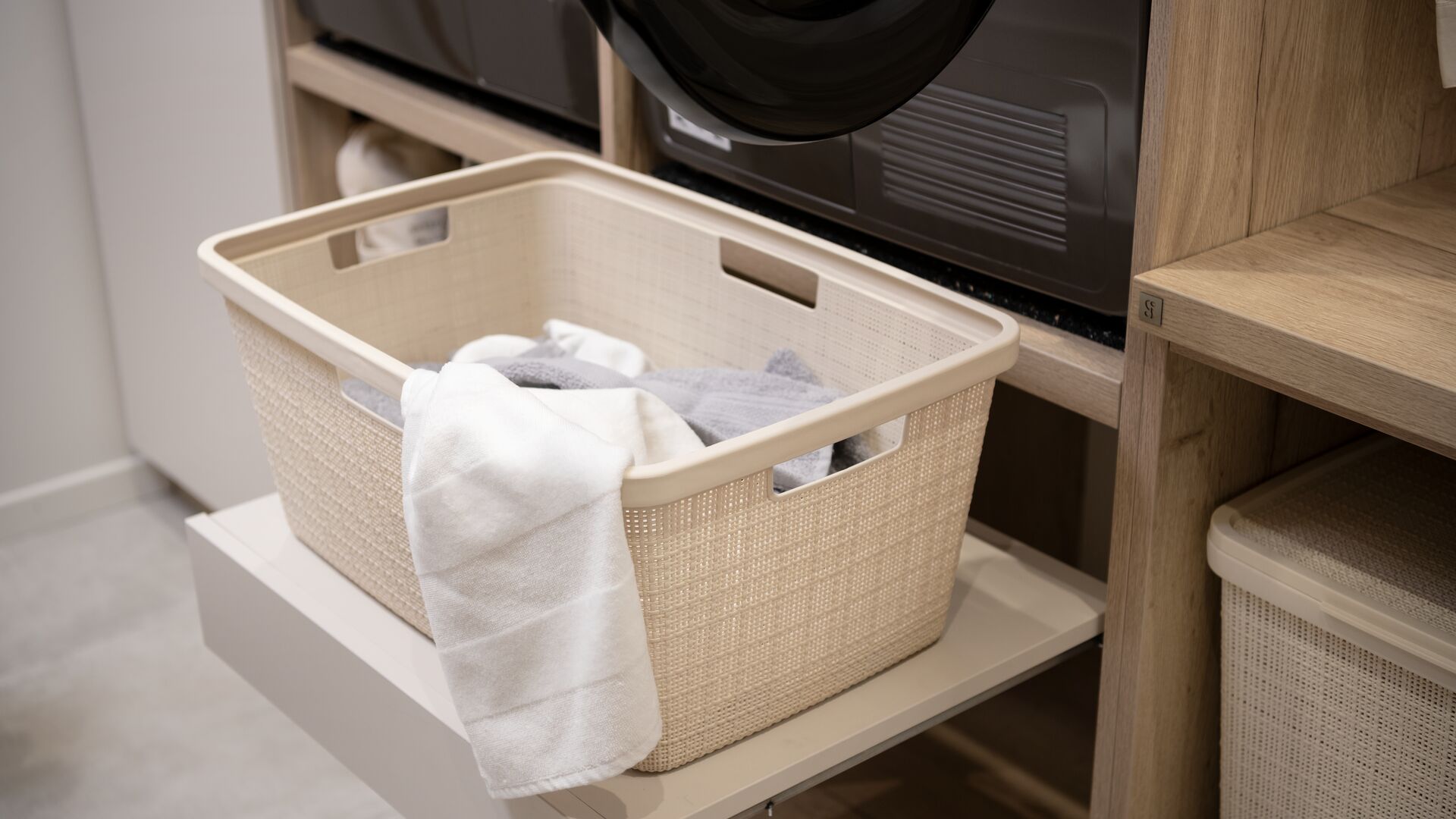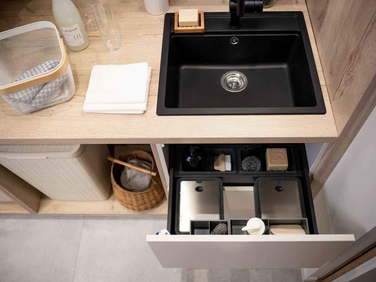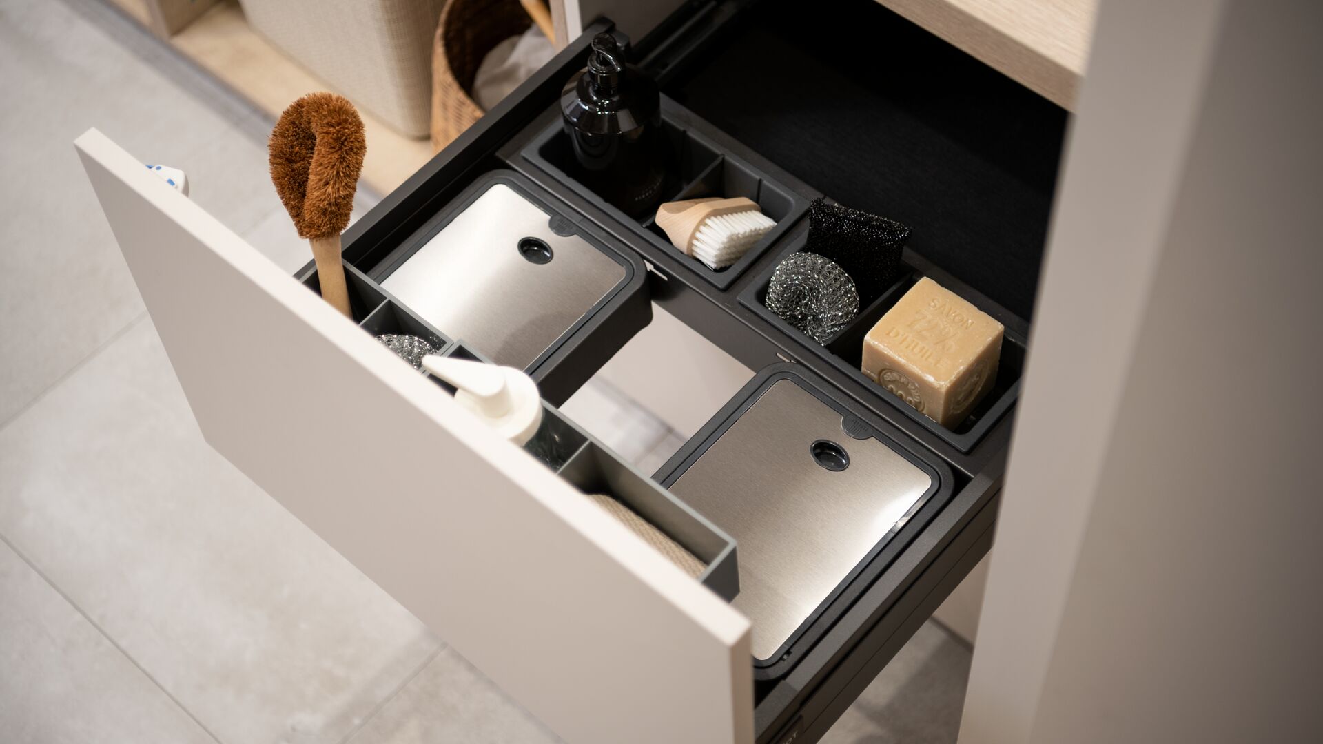 "Alles op zijn plaats"... Zo willen Oscar en Anne dat hun bijkeuken ingericht wordt! Praktisch opruimen staat centraal bij dit stel, dat boven alles de voorkeur geeft aan een eenvoudige en slimme inrichting die aangepast is aan hun dagelijks leven. Aan een kant elementen om ervoor te zorgen dat de bijkeuken functioneel is en aan de andere kant meubels om alle voorraden prefect op te ruimen. Deze inrichting zorgde er trouwens voor dat het stel gekozen heeft voor dit design van Schmidt. Zachte kleuren, hoogwaardig materiaal, strakke lijnen en efficiënte opbergruimte... het recept voor een prefect uitgedachte inrichting volgens Oscar en Anne!