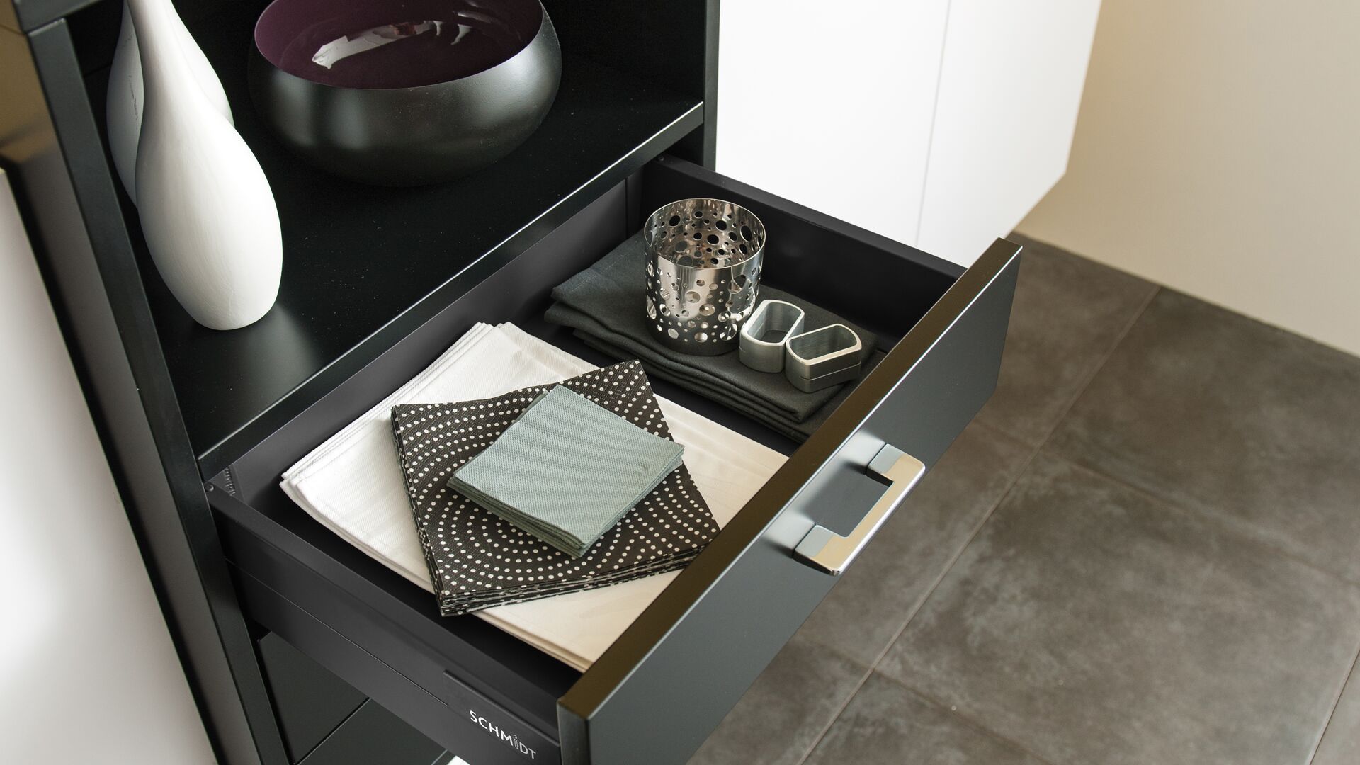 Eenvoud kan soms prachtig zijn. Everest-wit, Caneo-zwart... Symmetrie, kleine verschillen... En het gevoel van perfecte verhoudingen, tot op de millimeter berekend, om ruimte te besparen en tegelijk een natuurlijk evenwicht te bewaren.