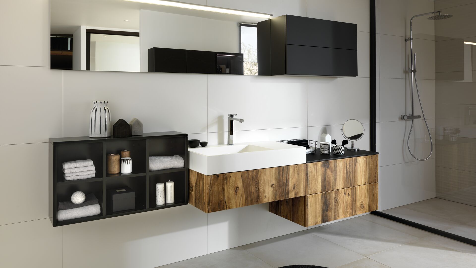 De corpussen zijn zeer toegankelijk en eenvoudig te bewerken. Zij bieden vele mogelijkheden, zowel wat betreft kleuren als vormen en materiaaleffecten. Ideaal voor een harmonieuze total look badkamer, van de fronten tot het wastafelblad.